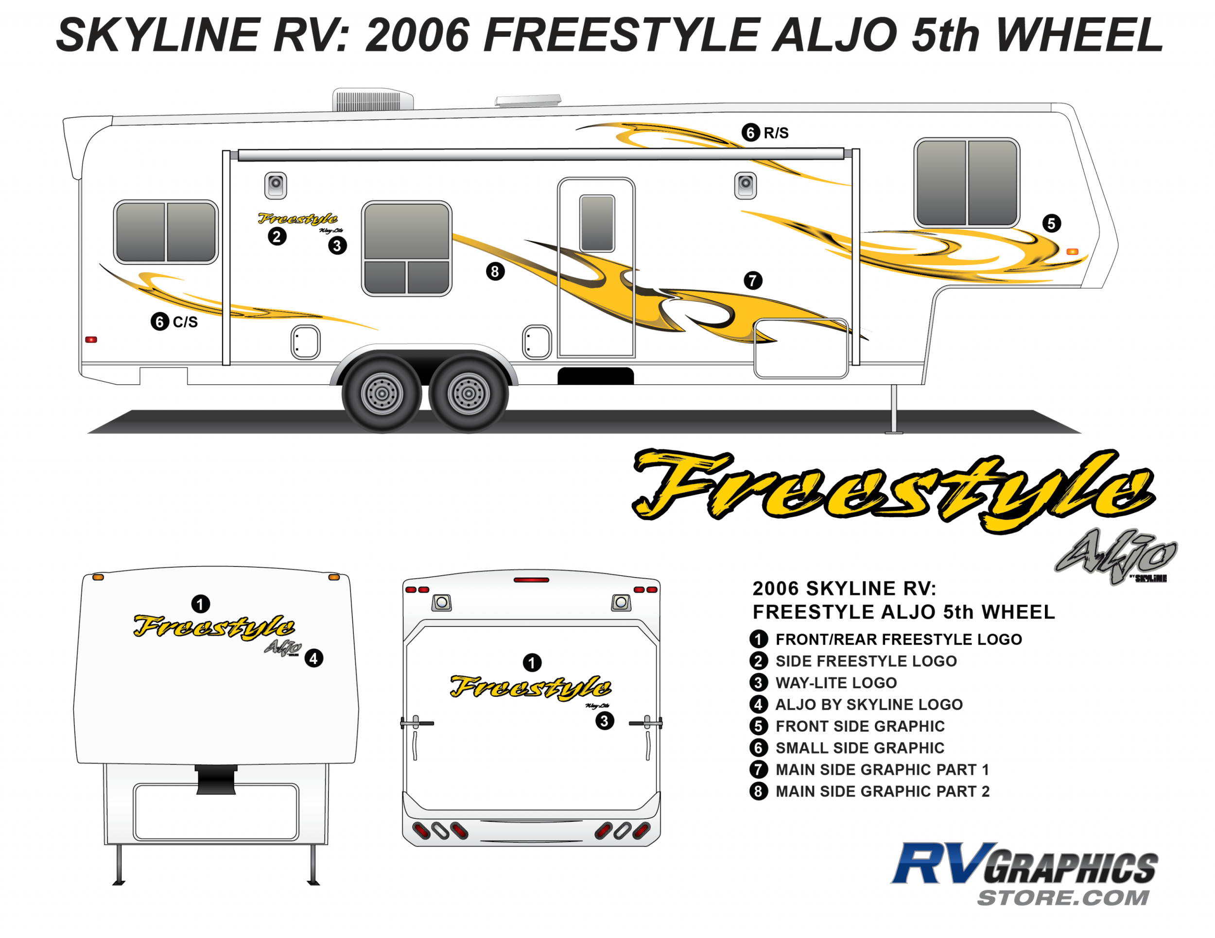 2006 Freestyle RV Graphic Component Bullet Number: 1 Color: White Base Prt Height (inches): 11 Length (inches}: 64 Adhesive Type Provided: Controltac Paper Applicatio...