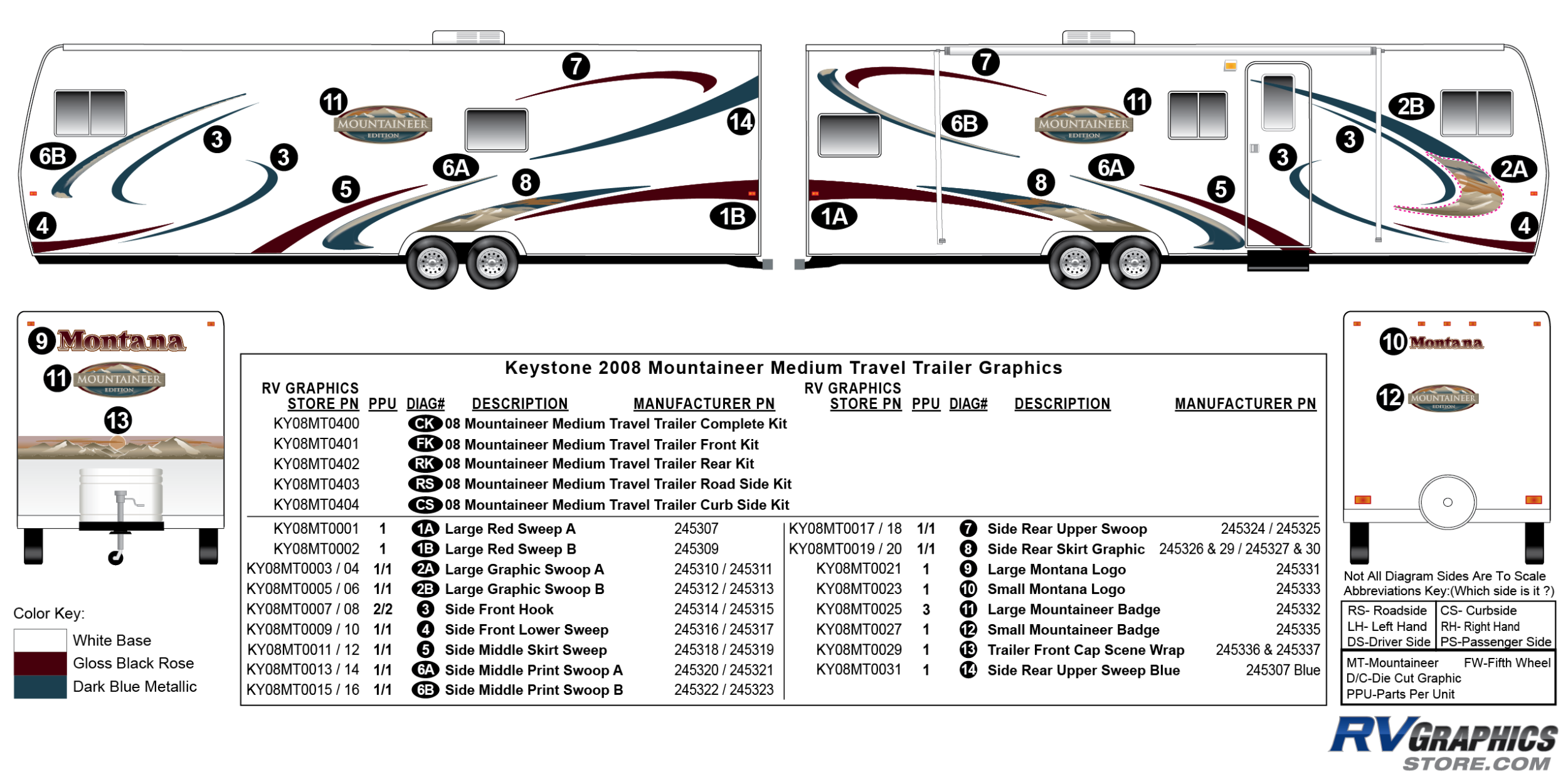 12 Piece 2008 Mountaineer Medium Travel Trailer Curbside Graphics Kit