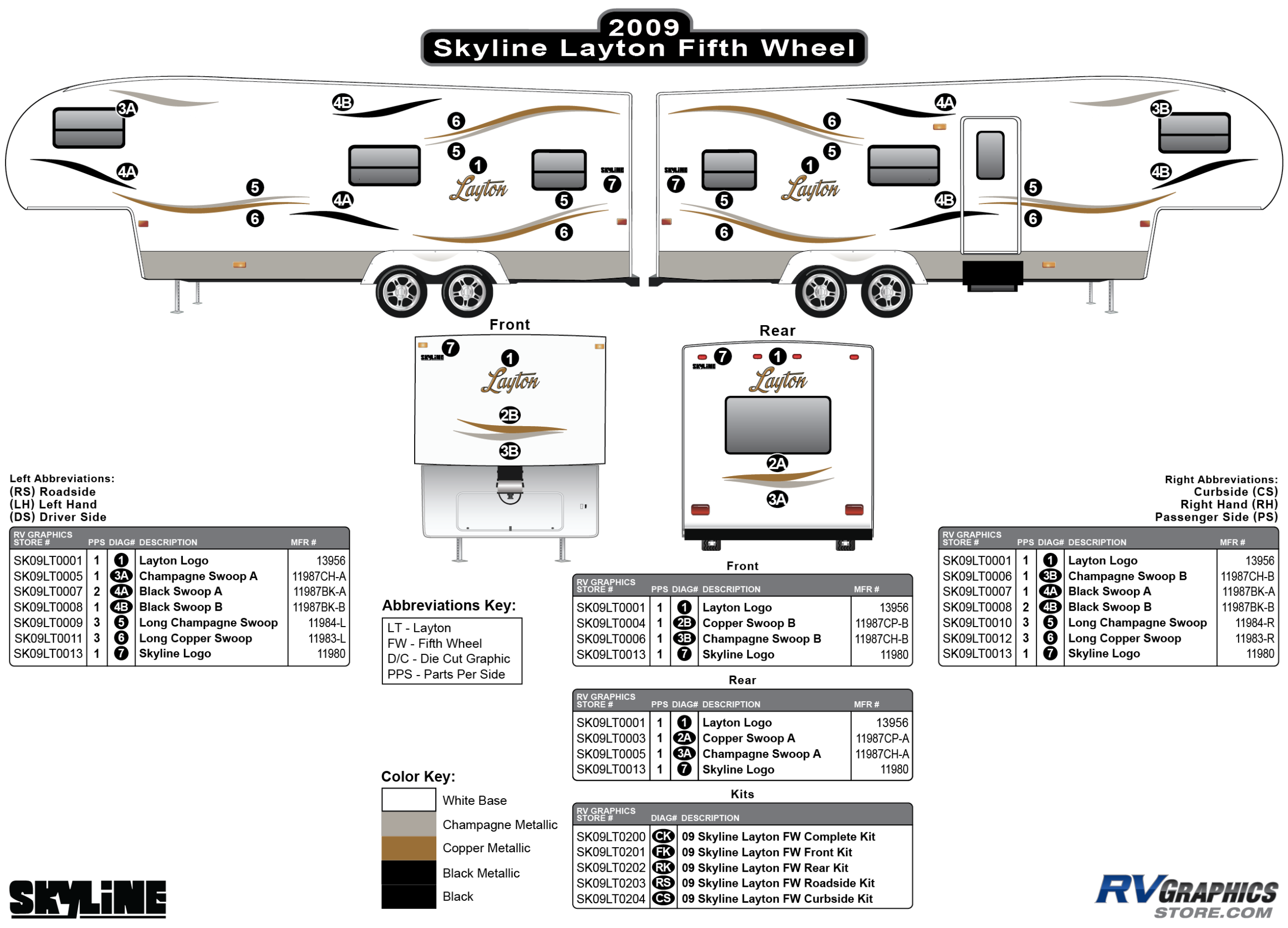 Description: 2009 Layton RV Graphics Curbside Kit Bullet Number: CS Color: 5 Base Colors Height (inches): 14 Length (inches}: 104.5 Adhesive Type Provided: Controltac Paper...More Details »