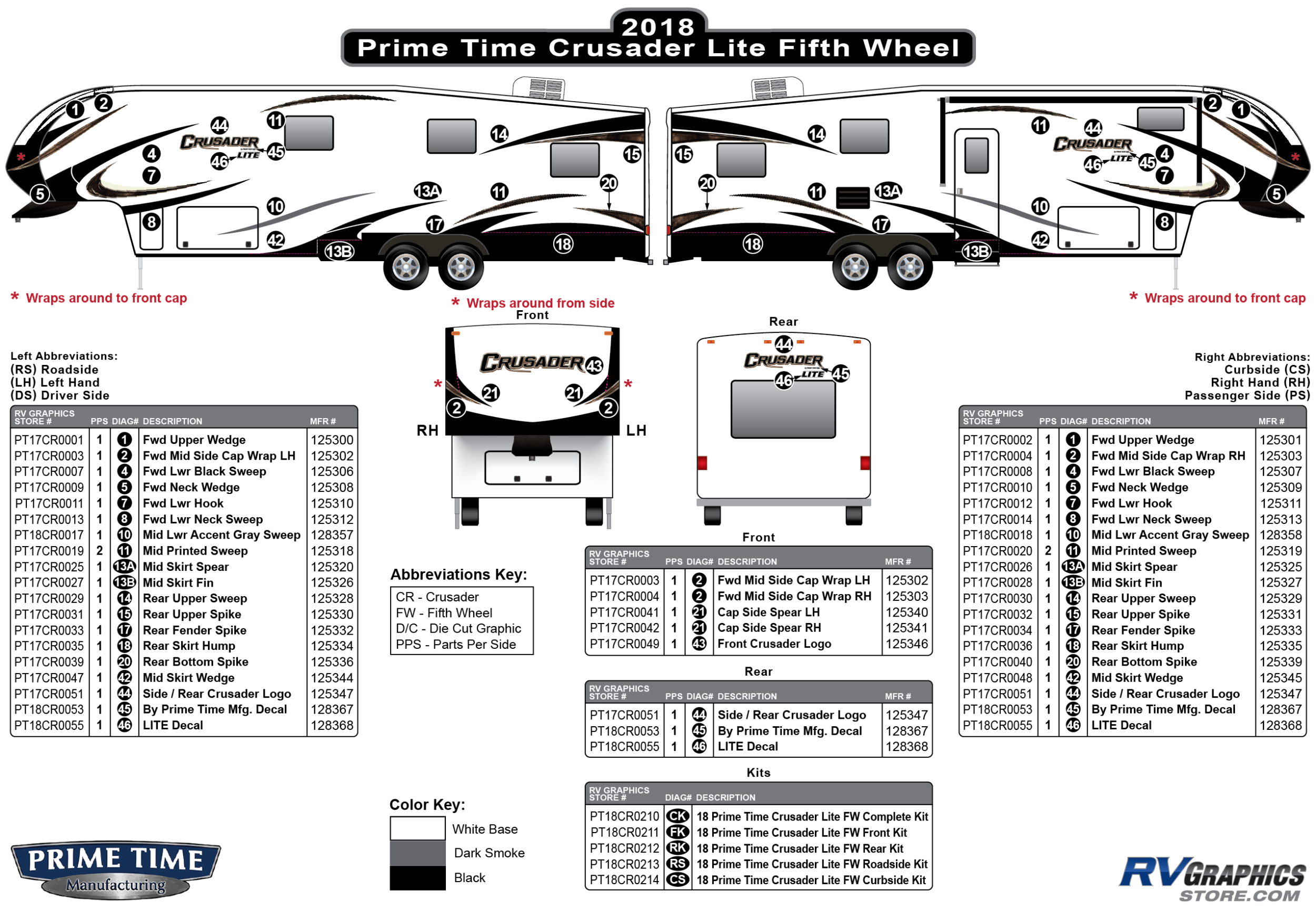 46 Piece 2018 Crusader Lite Fifth Wheel Complete Graphics Kit