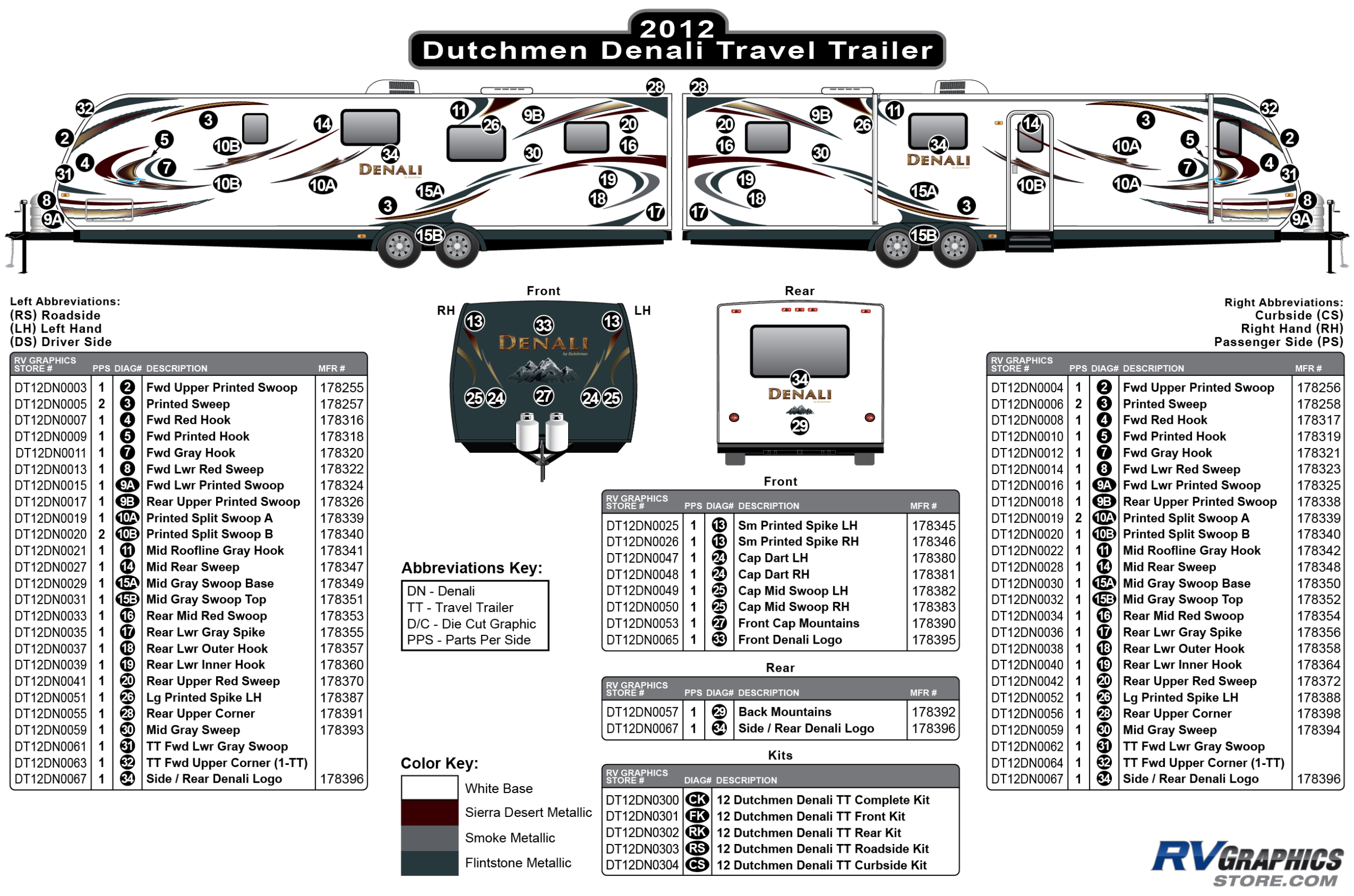 27 Piece 2012 Denali Travel Trailer Curbside Graphics Kit