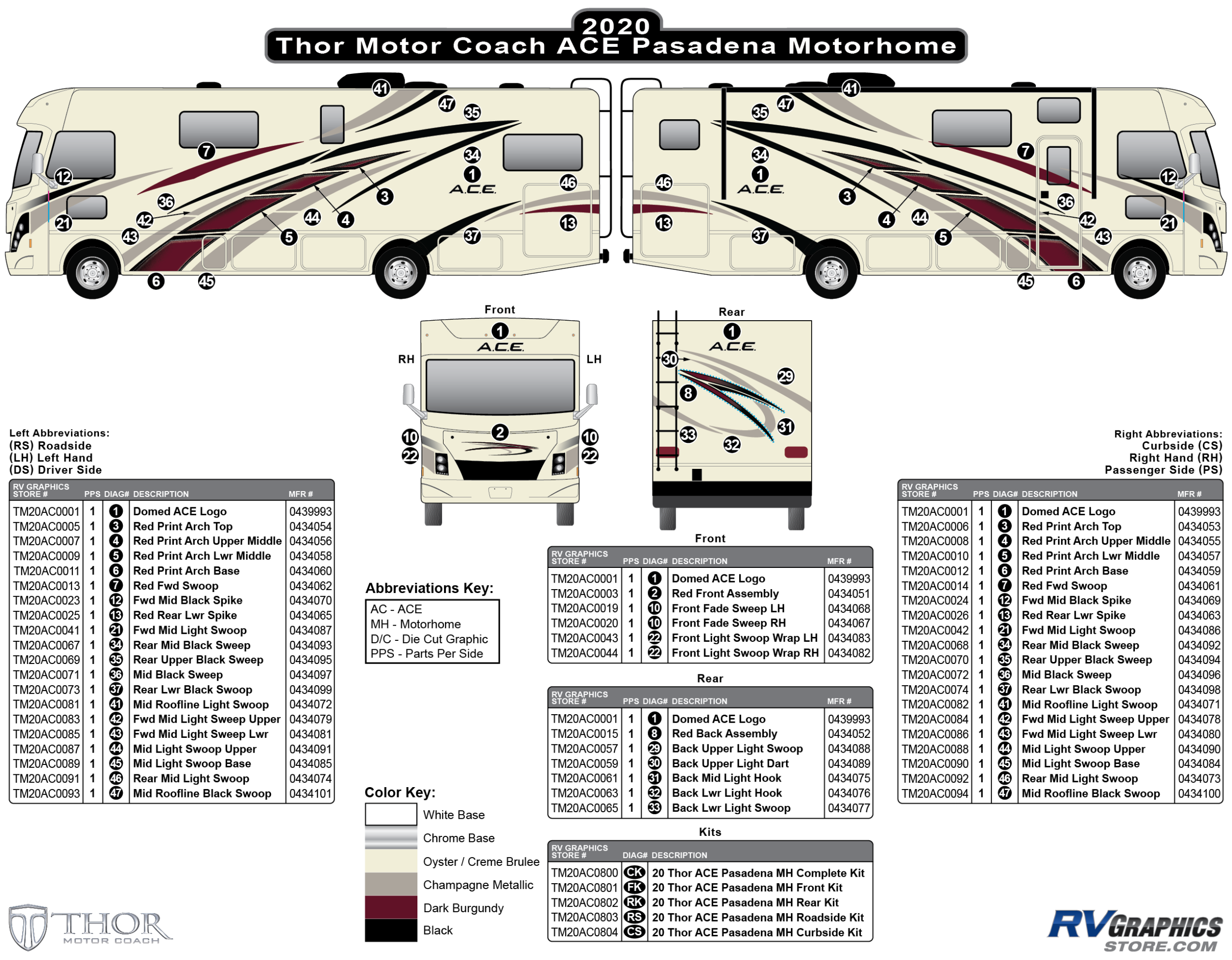20 Piece 2020 ACE Motorhome Burgundy Roadside Graphics Kit