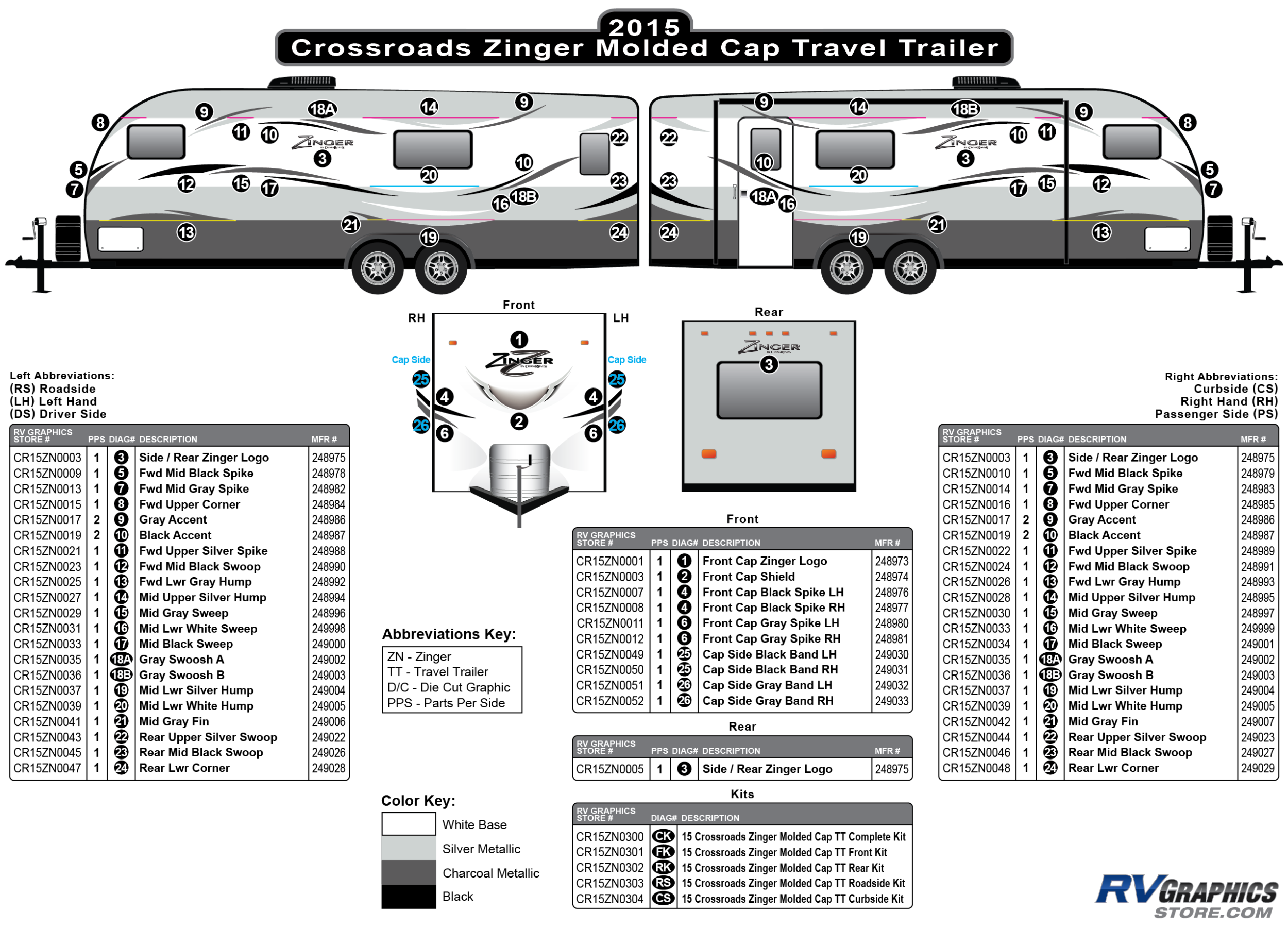 23 Piece 2015 Zinger Molded Cap Travel Trailer Roadside Graphics Kit