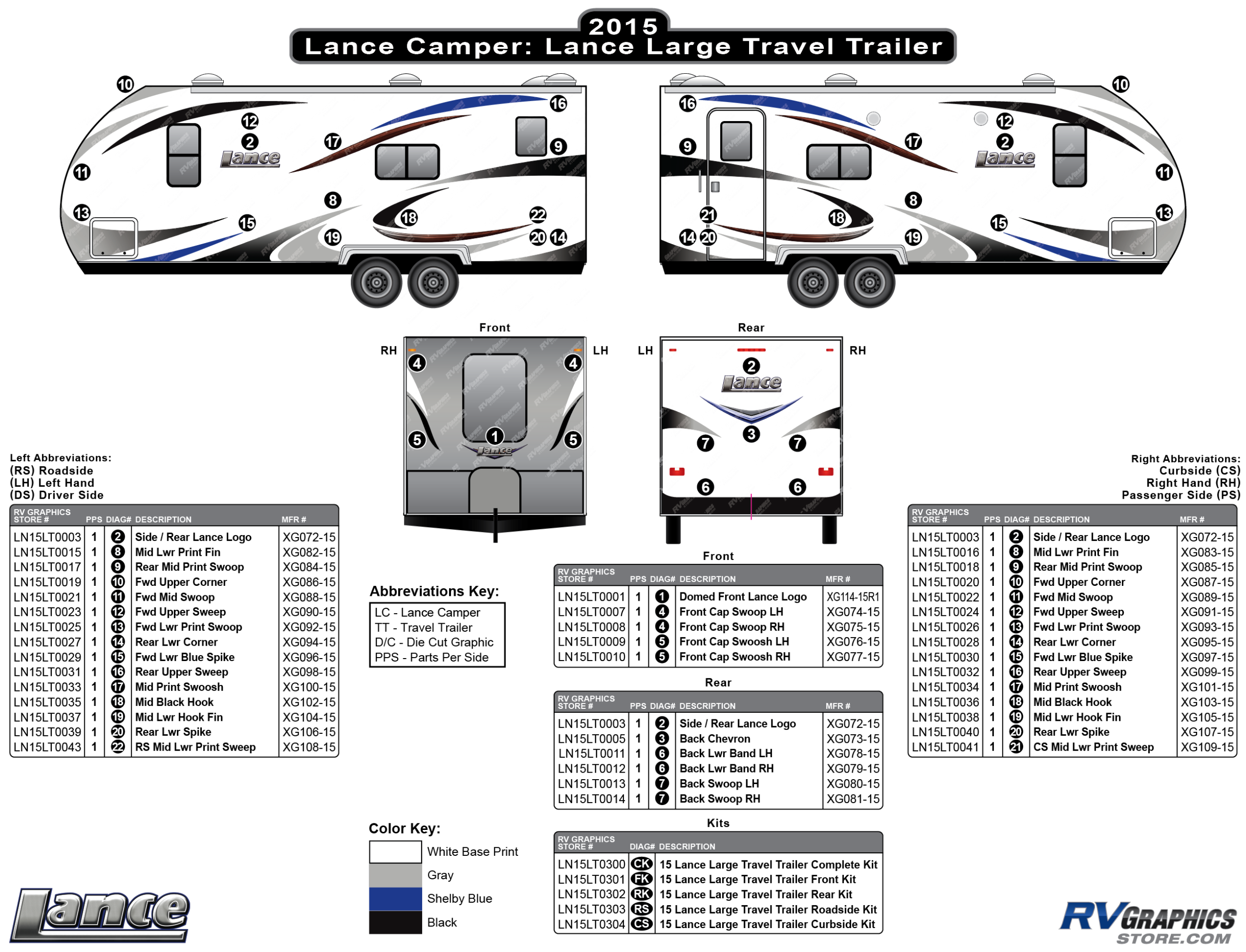 Description: 2015 Lance RV Graphics Complete Kit Bullet Number: CK Color: 4 Base Colors Height (inches): Length (inches}: Adhesive Type Provided: Controltac Paper Application...More Details »