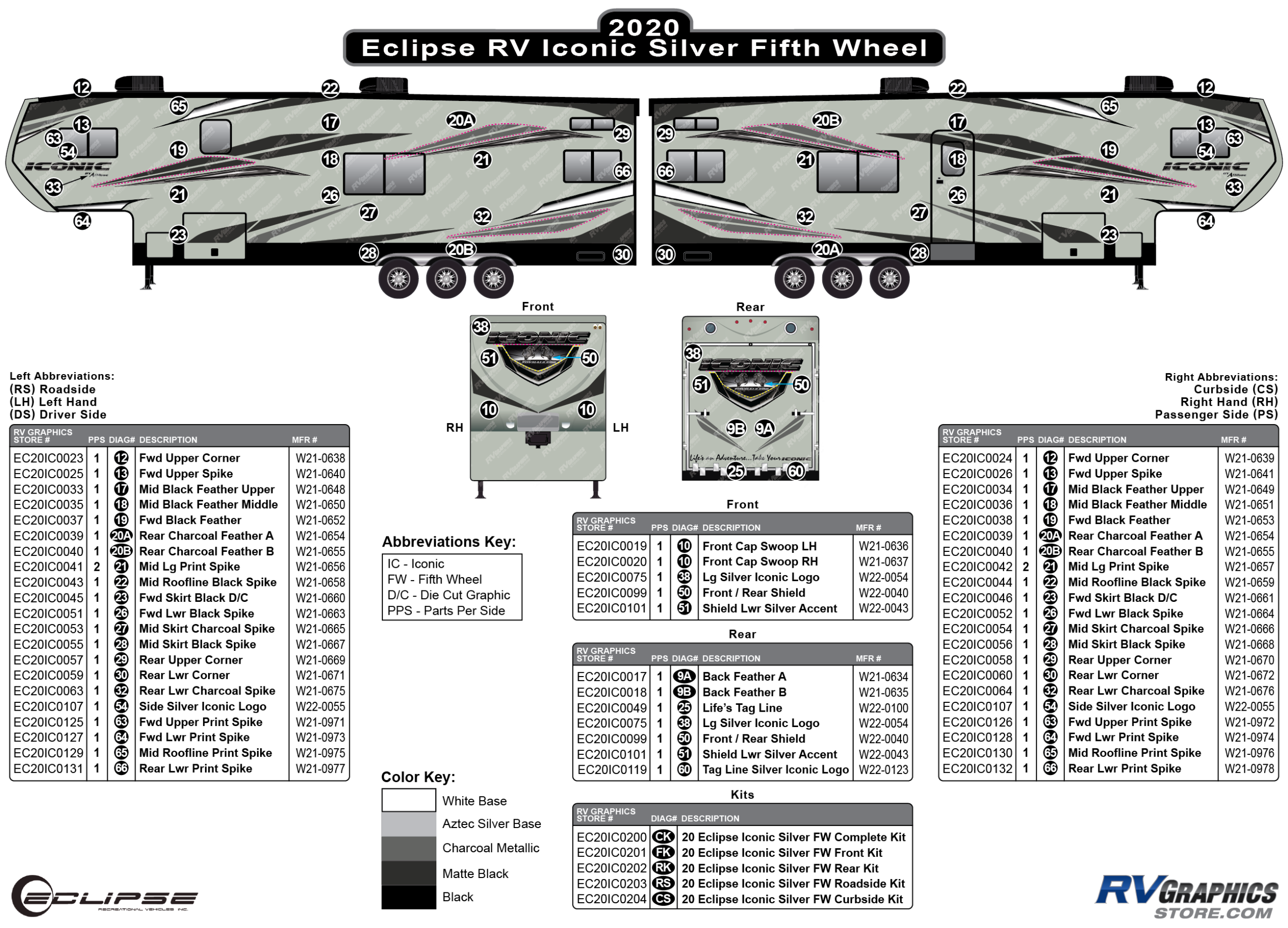 58 Piece 2020 Iconic Fifth Wheel Complete Graphics Kit