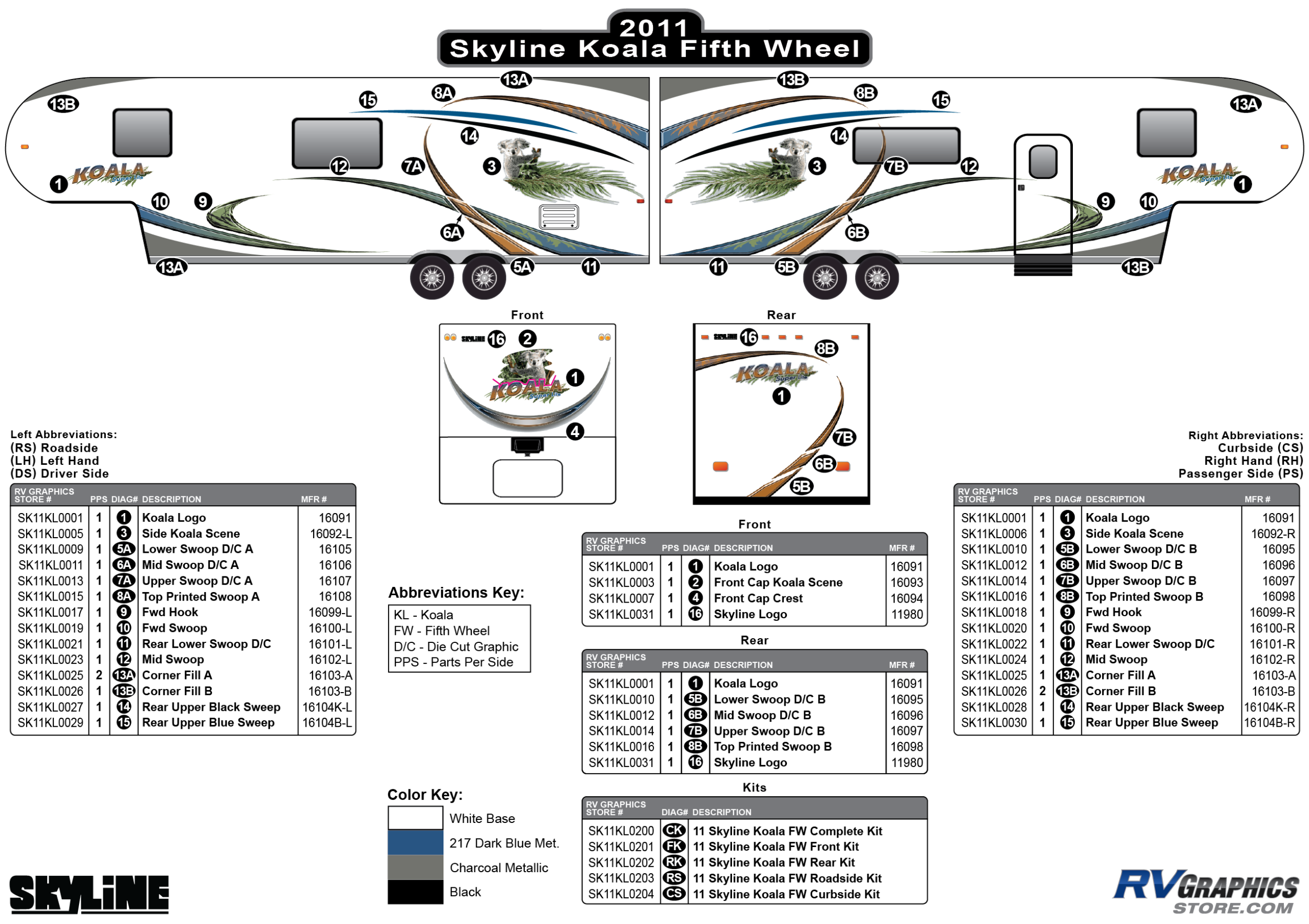40 Piece 2011 Koala Fifth Wheel Complete Graphics Kit