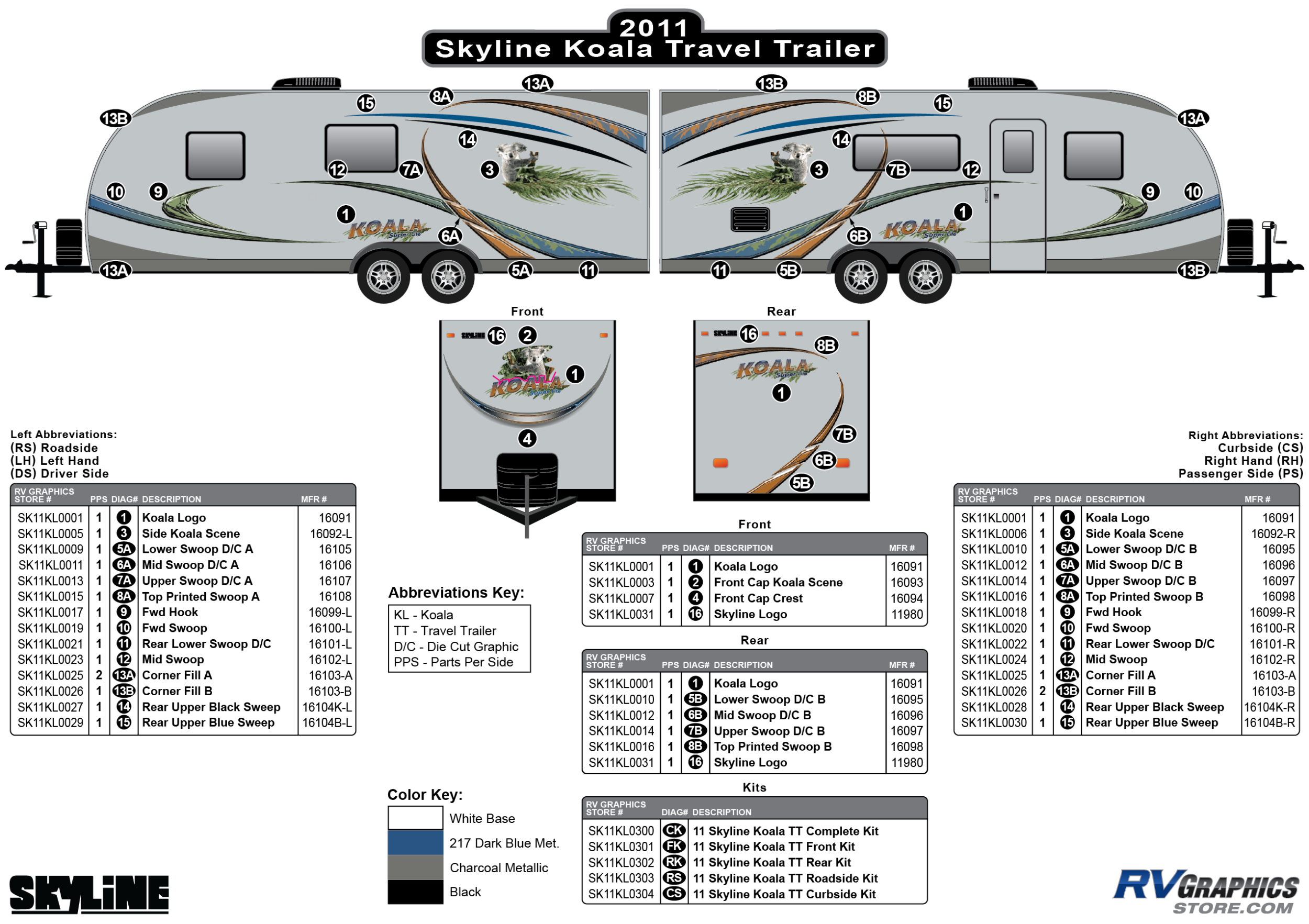 15 Piece 2011 Koala Lg Travel Trailer Curbside Graphics Kit