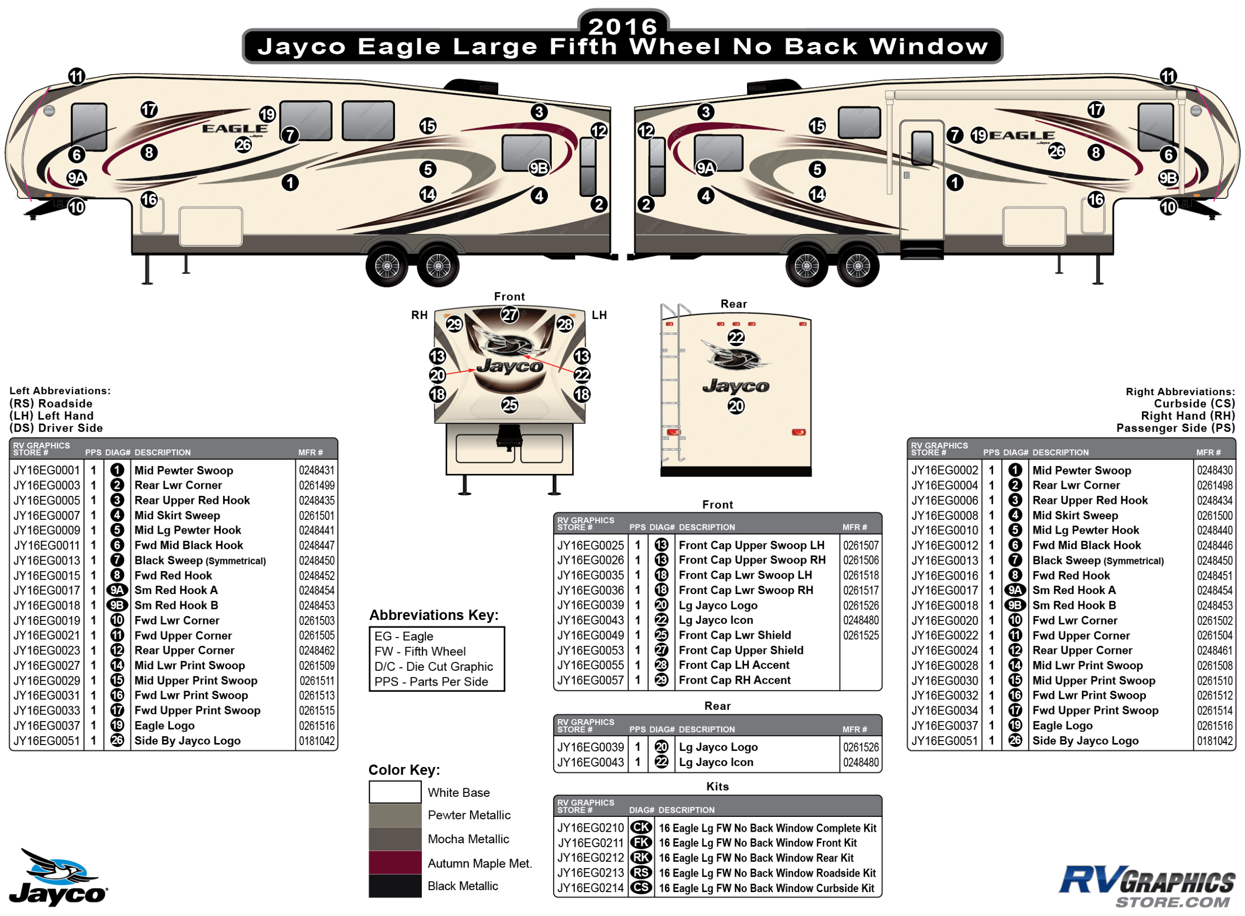 19 Piece 2016 Eagle Fifth Wheel No Rear Window Roadside Graphics Kit