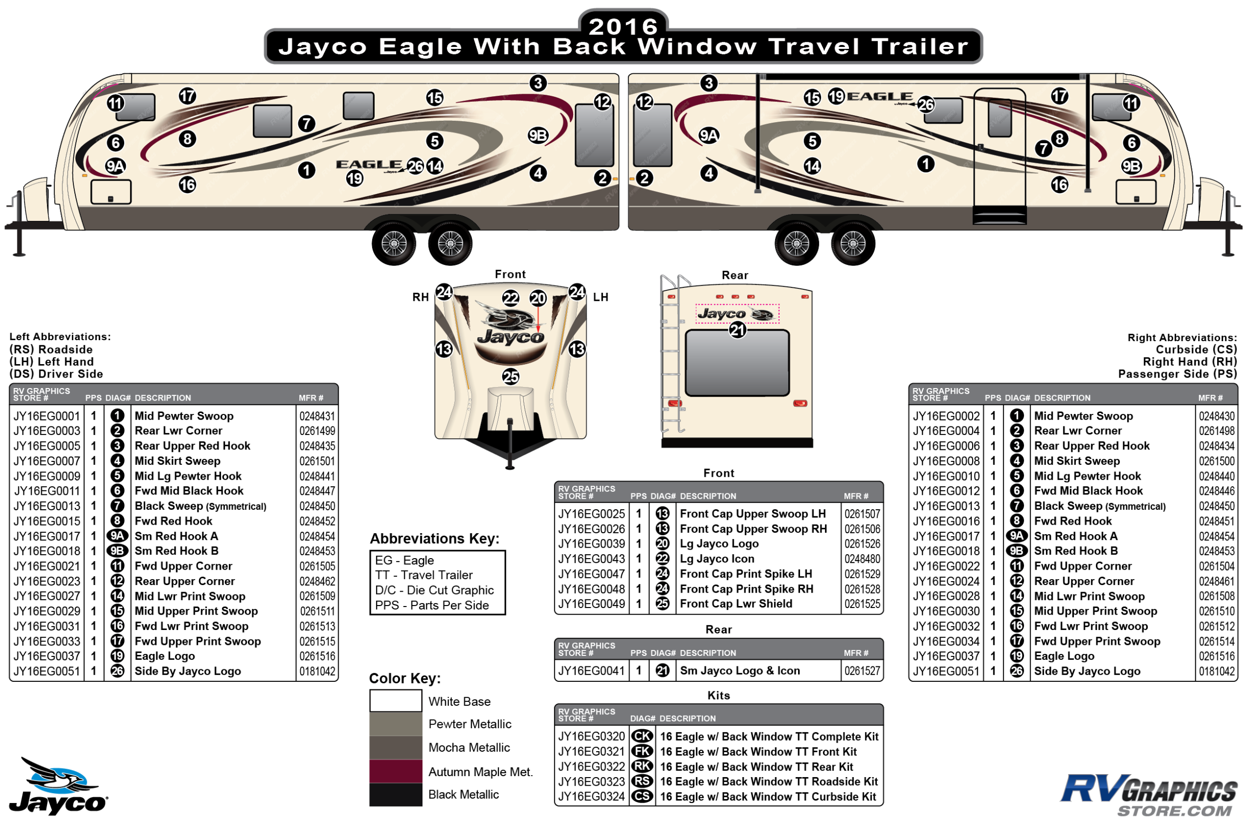 18 Piece 2016 Eagle Travel Trailer with Rear Window Curbside Graphics Kit
