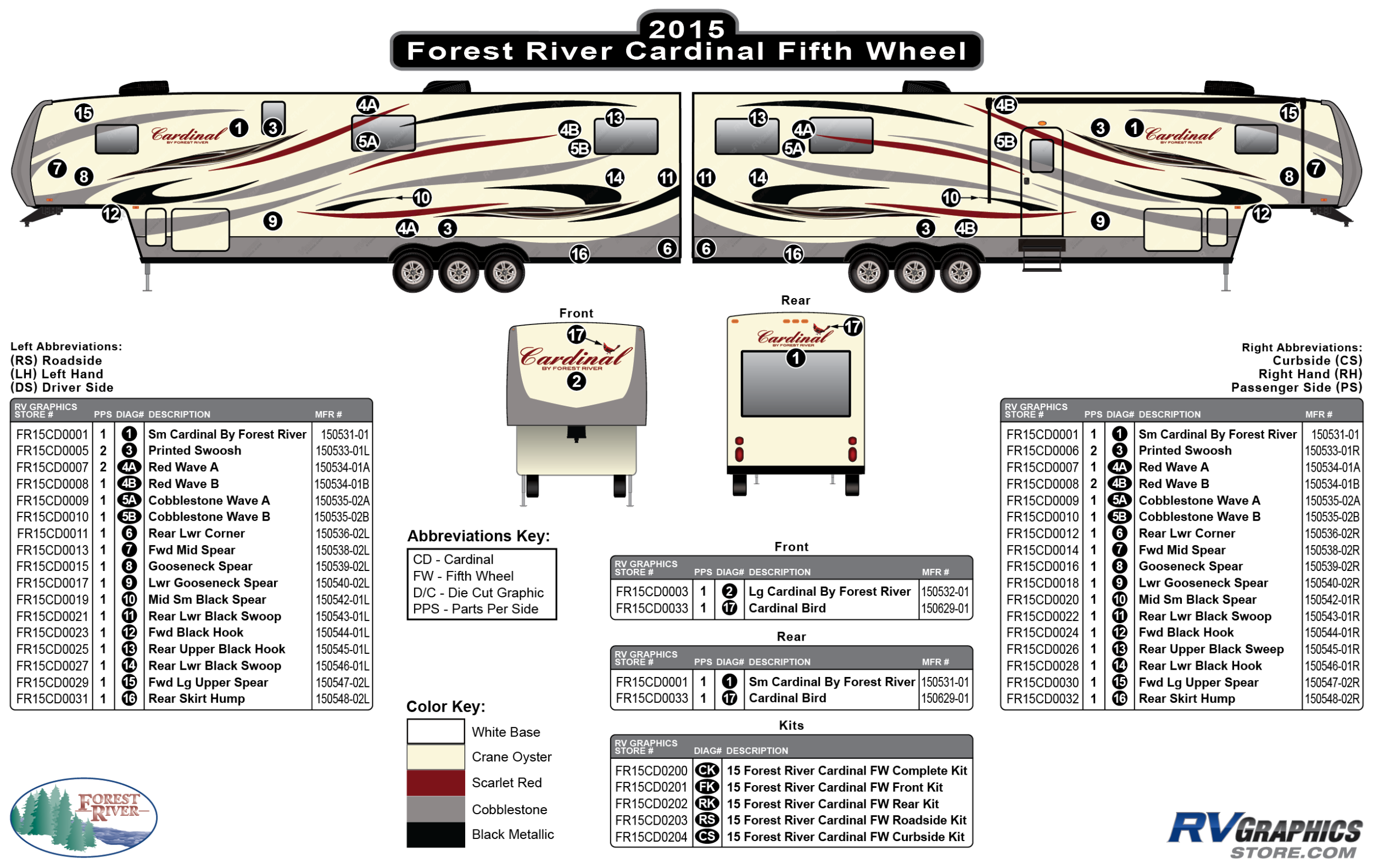 42 Piece 2015 Cardinal Fifth Wheel Complete Graphics Kit