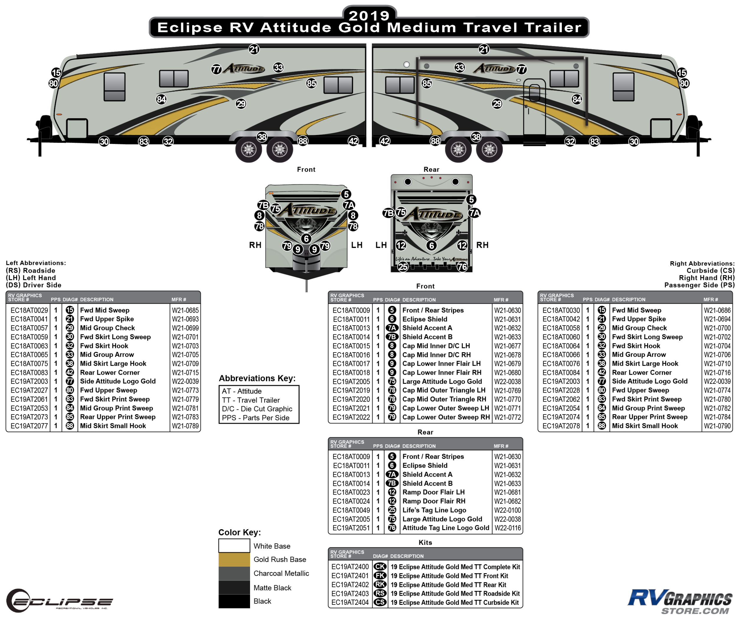 50 Piece 2019 Attitude Medium Travel Trailer Complete Graphics Kit