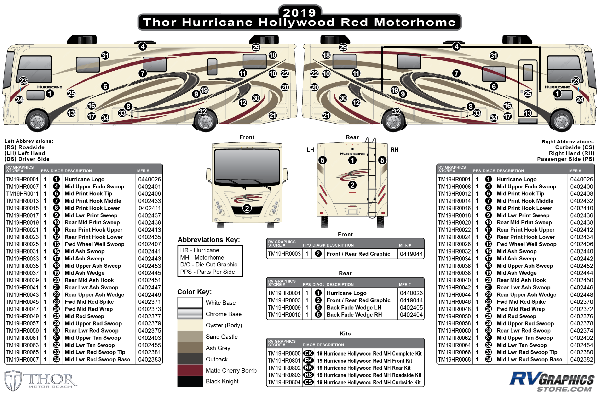 Description: 2019 Hurricane RV Graphics Roadside Kit Bullet Number: RS Color: 6 Base Colors Height (inches): 25.9 Length (inches}: 173.2 Adhesive Type Provided: Controltac Paper...More Details »