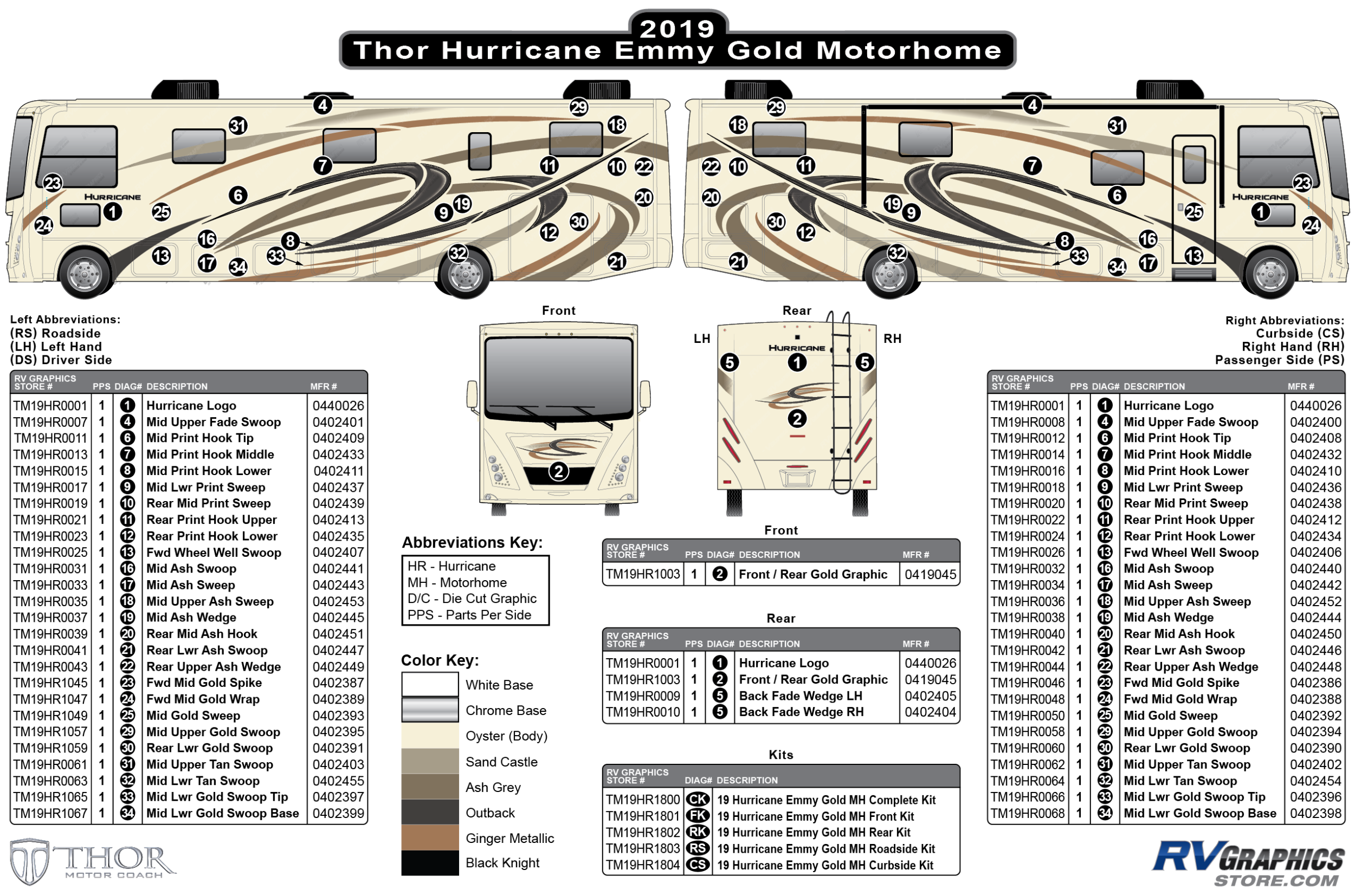 26 Piece 2019 Hurricane Motorhome Curbside Graphics Kit-Gold Version