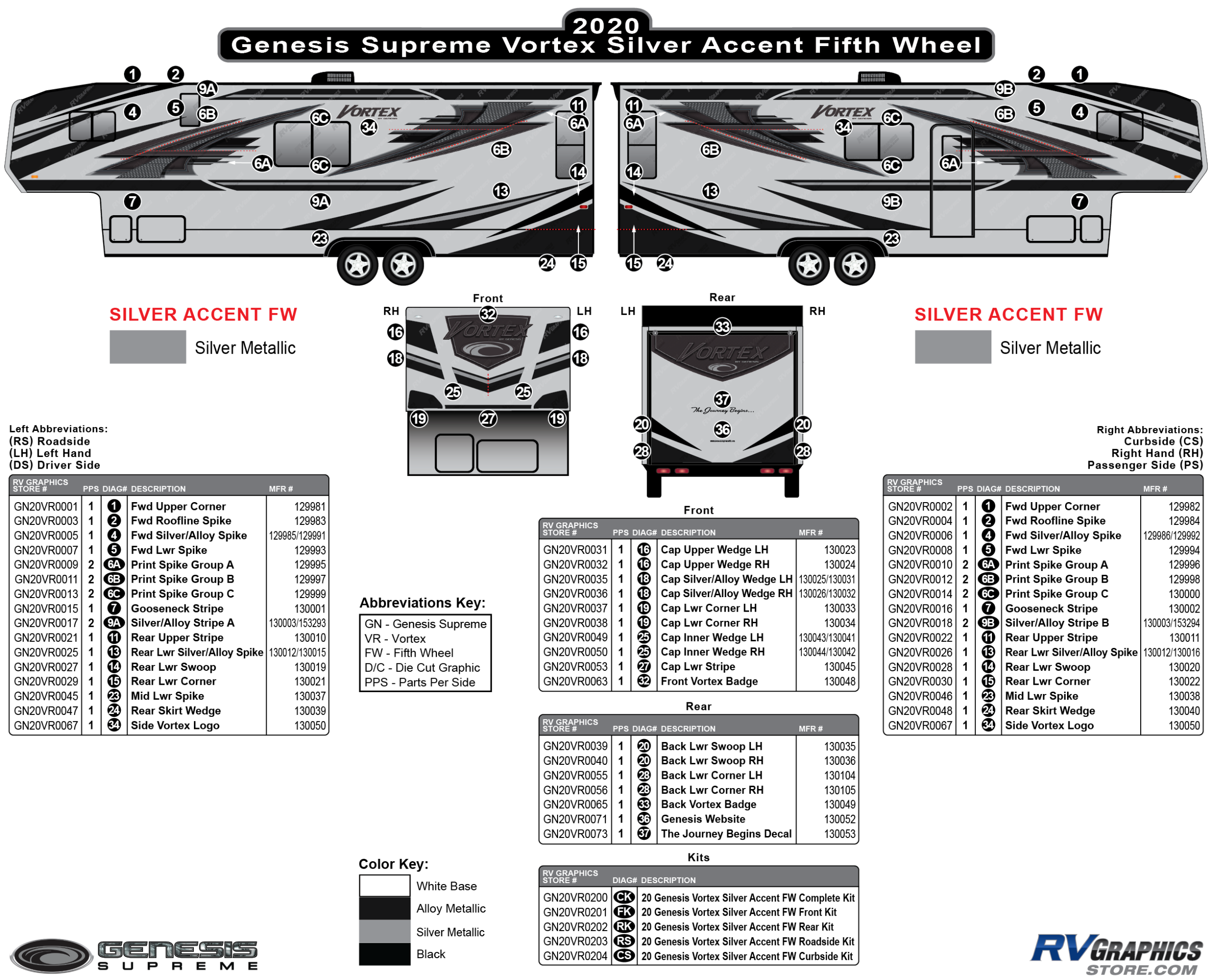 57 Piece 2020 Vortex Fifth Wheel Complete Graphics Kit-Silver Combination
