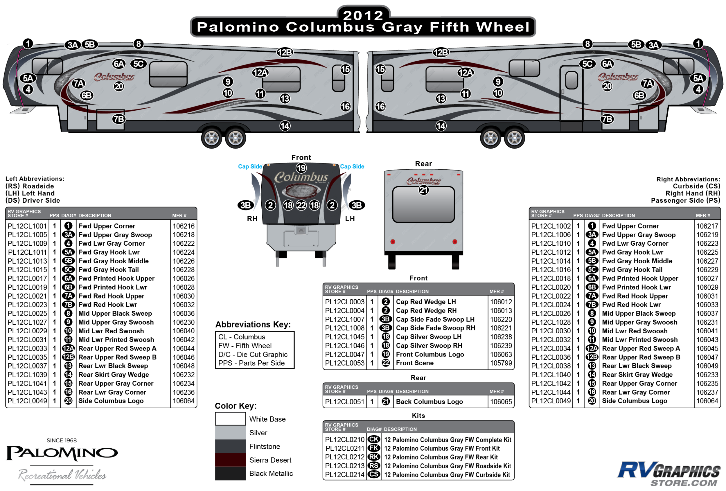 21 Piece 2012 Columbus Fifth Wheel Roadside Graphics Kit-Gray Version