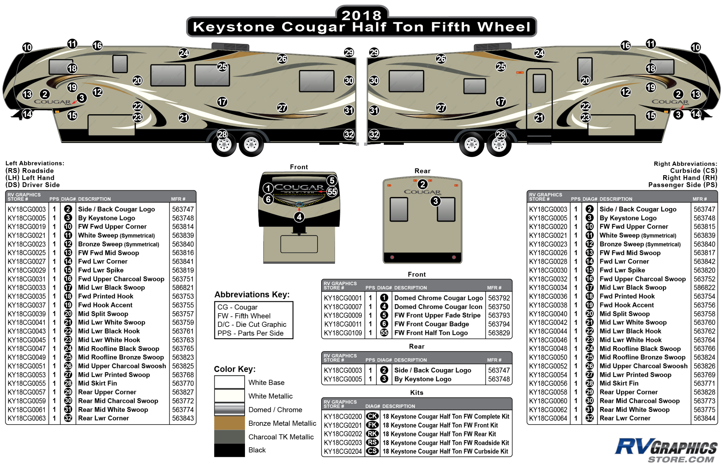 25 Piece 2018 Cougar Fifth Wheel Half Ton Curbside Graphics Kit