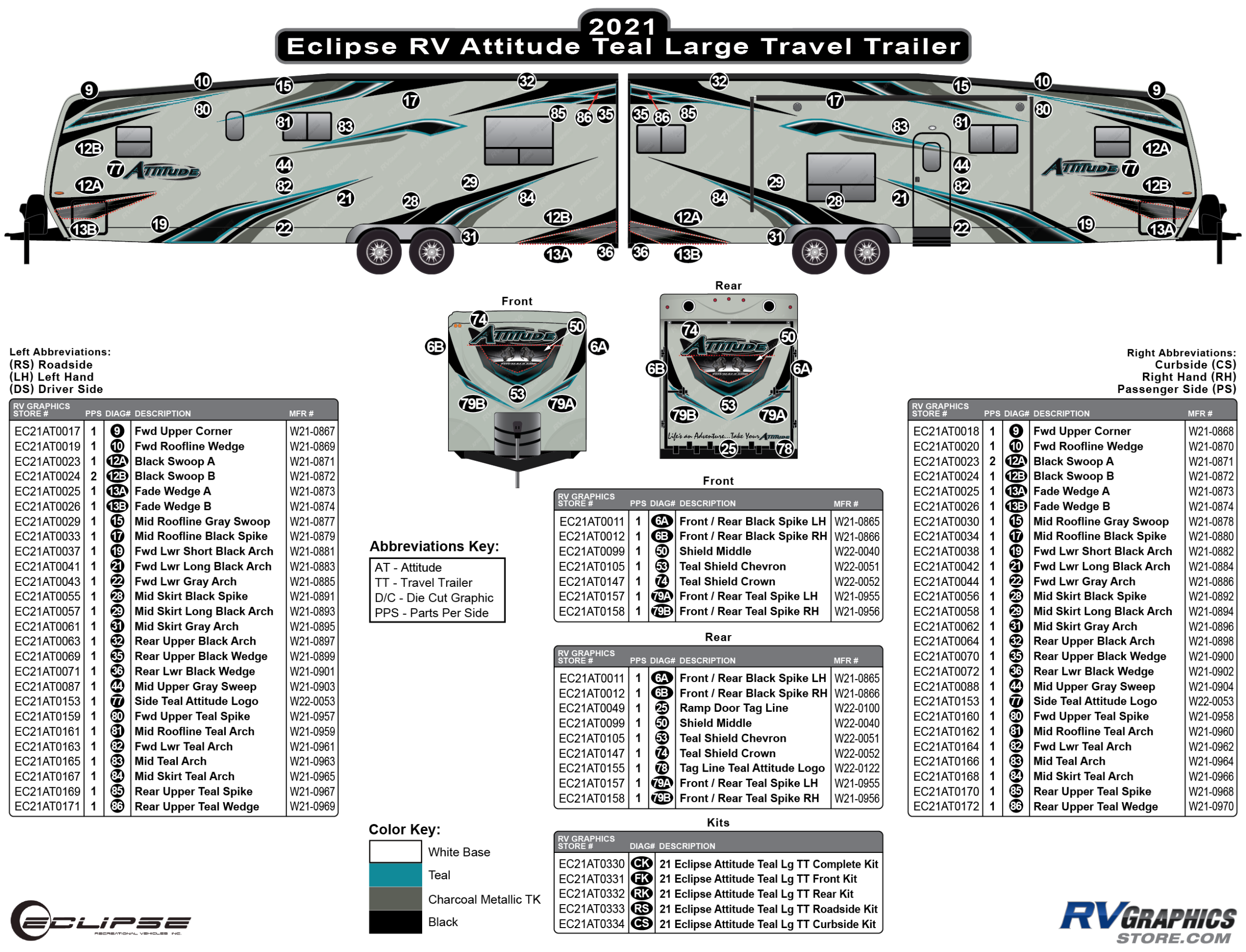 27 Piece 2021 Attitude Lg Travel Trailer Curbside Graphics Kit Teal Version