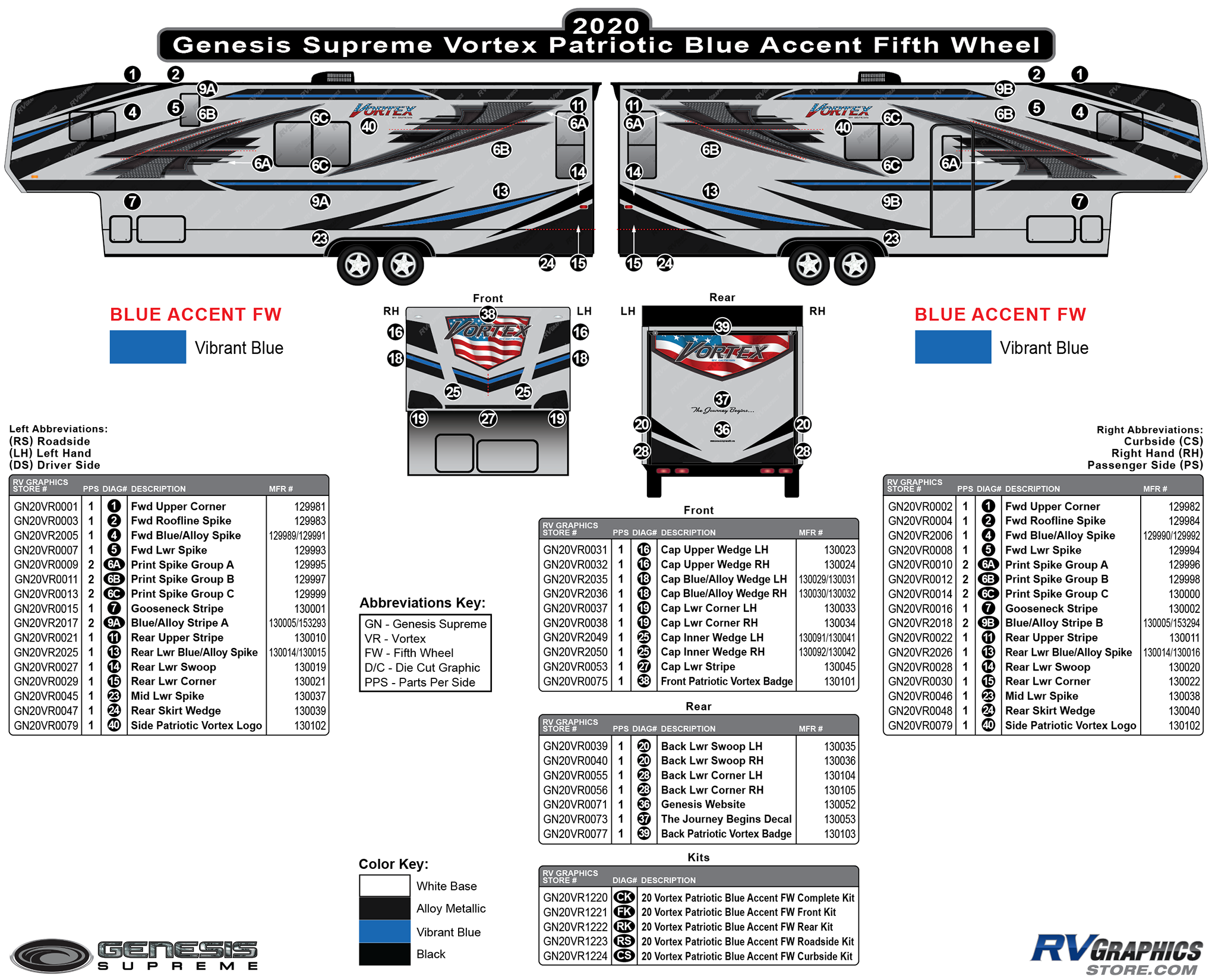 20 Piece 2020 Vortex Patriotic Fifth Wheel BLUE Version Curbside Graphics Kit