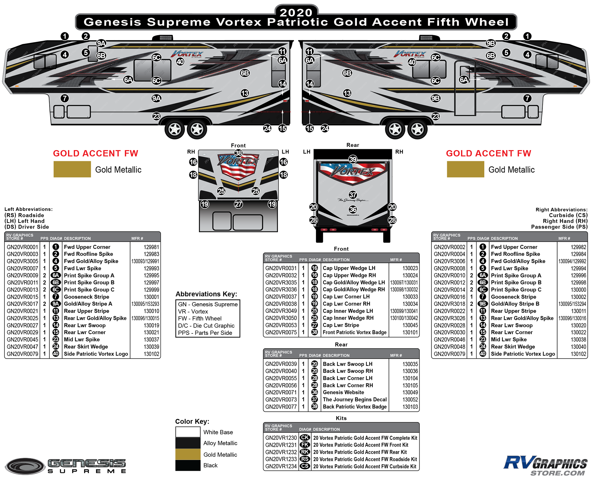 57 Piece 2020 Vortex Patriotic Fifth Wheel GOLD Version Complete Graphics Kit