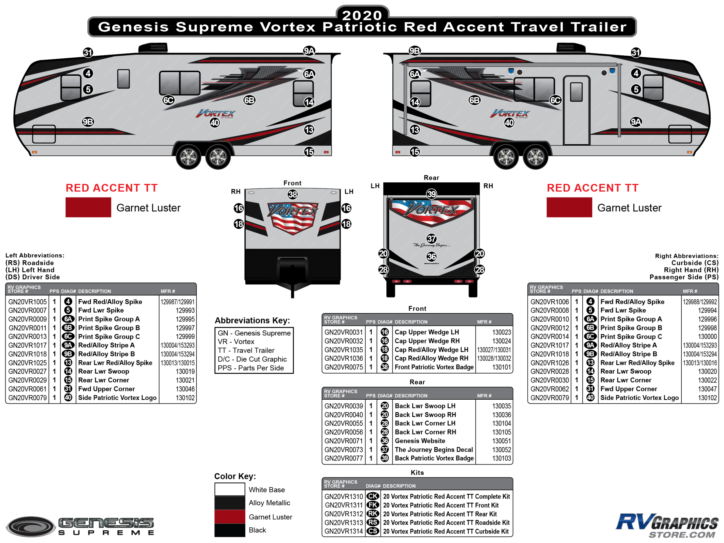 36 Piece 2020 Vortex Patriotic Travel Trailer RED Version Complete Graphics Kit