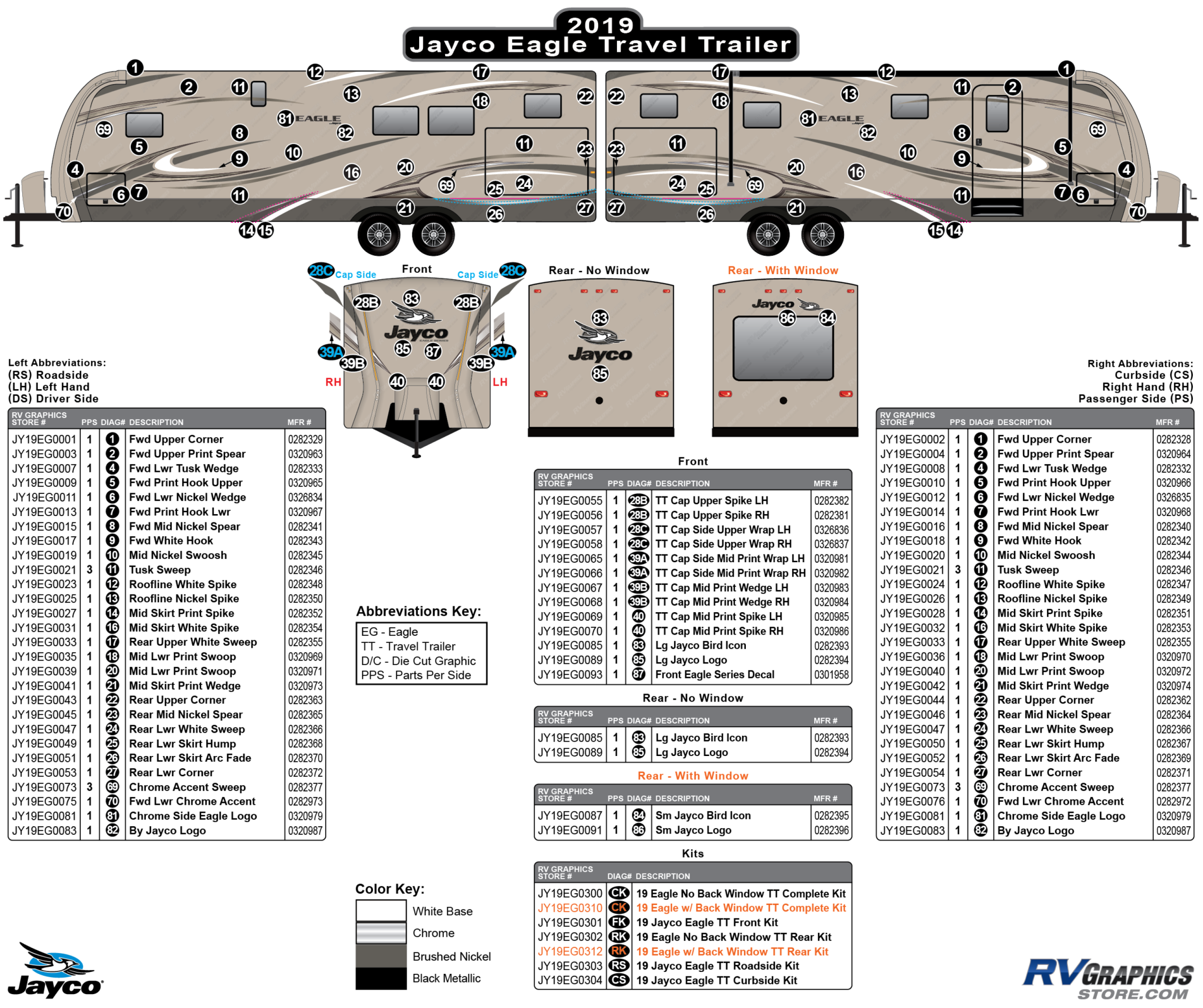 79 Piece 2019 Eagle Travel Trailer NO Back Window Complete Kit