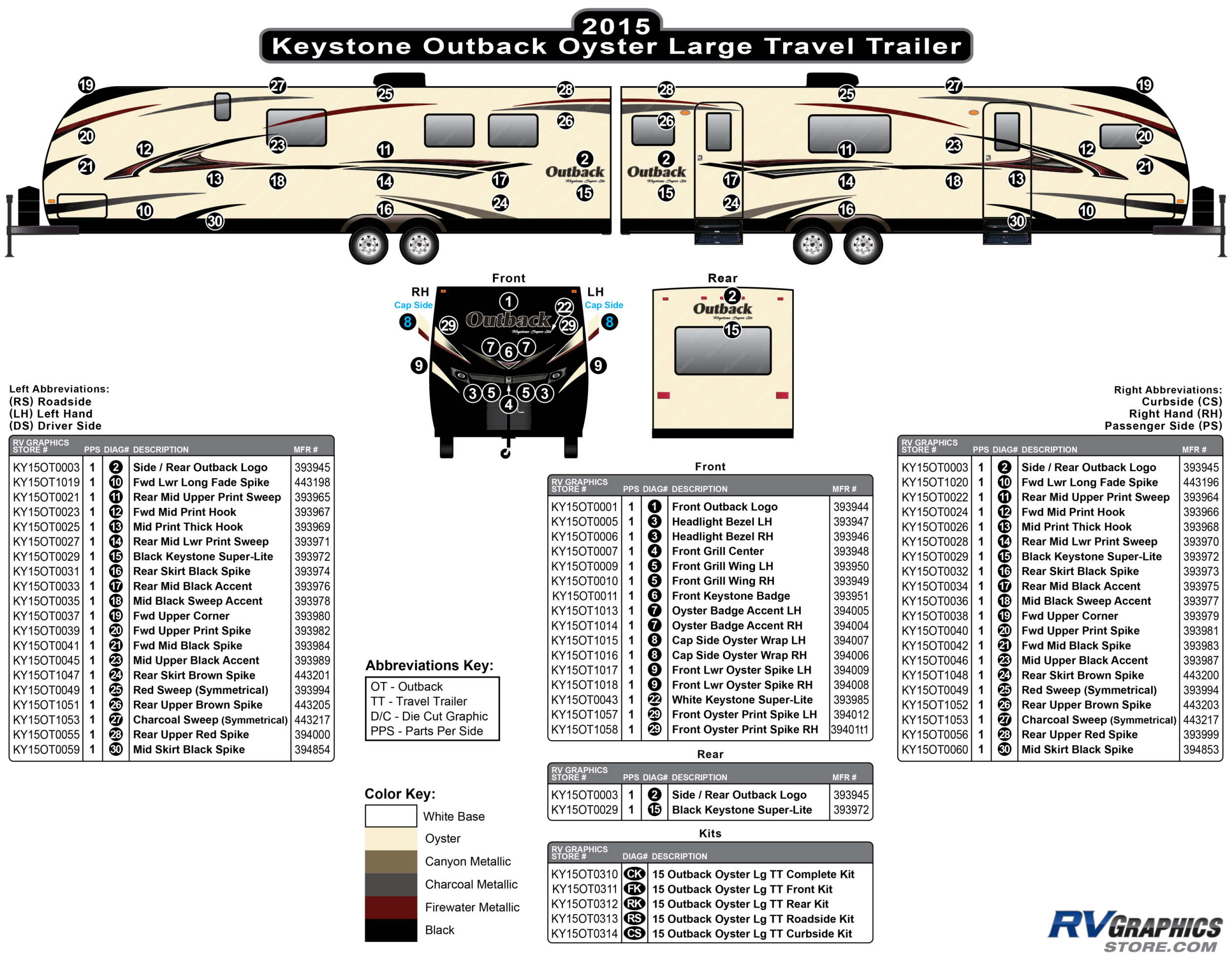 20 Piece 2015 Outback Travel Trailer Off White Sidewalls Curbside Graphics Kit