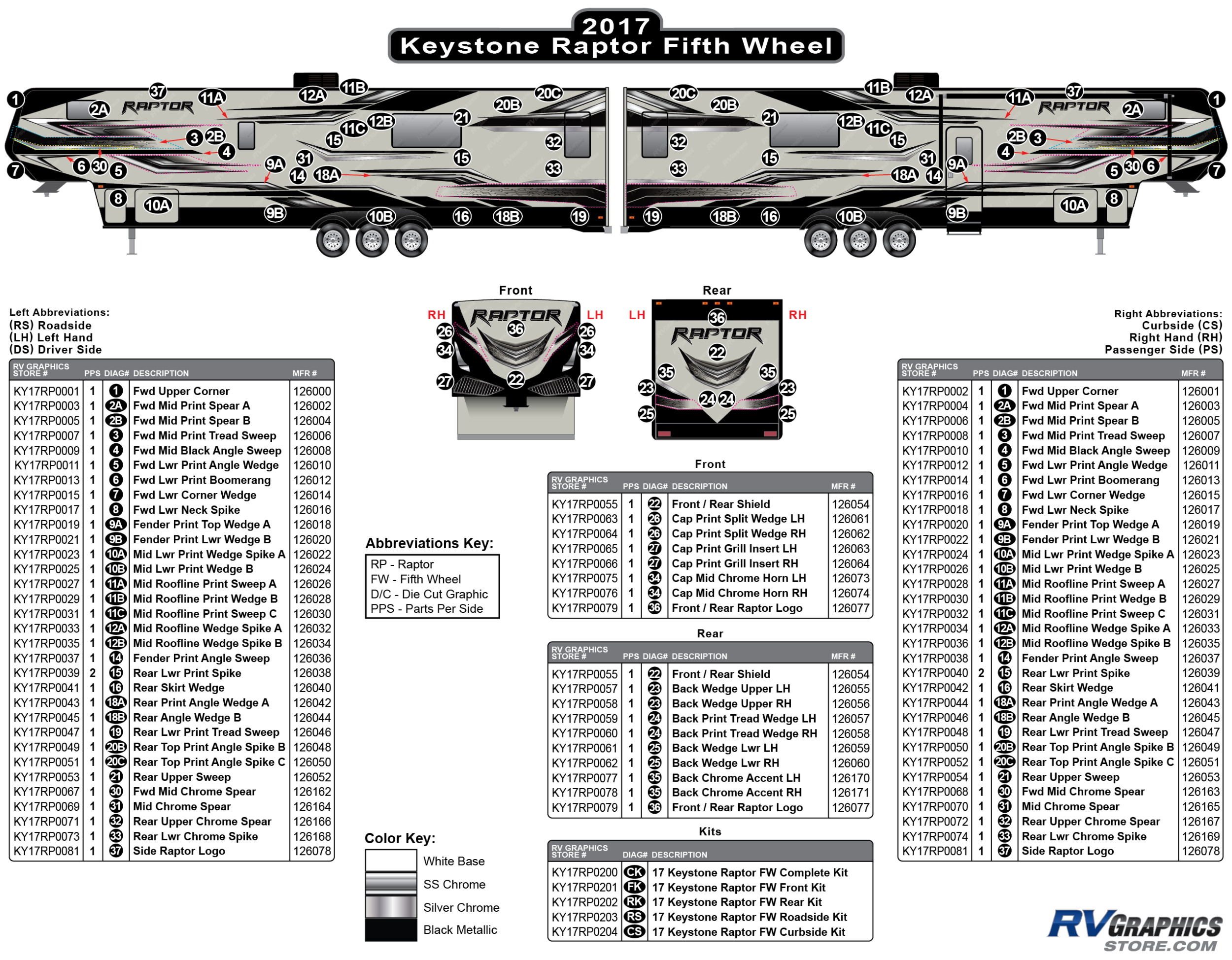 84 Piece 2017 Raptor Fifth Wheel Complete Graphics Kit