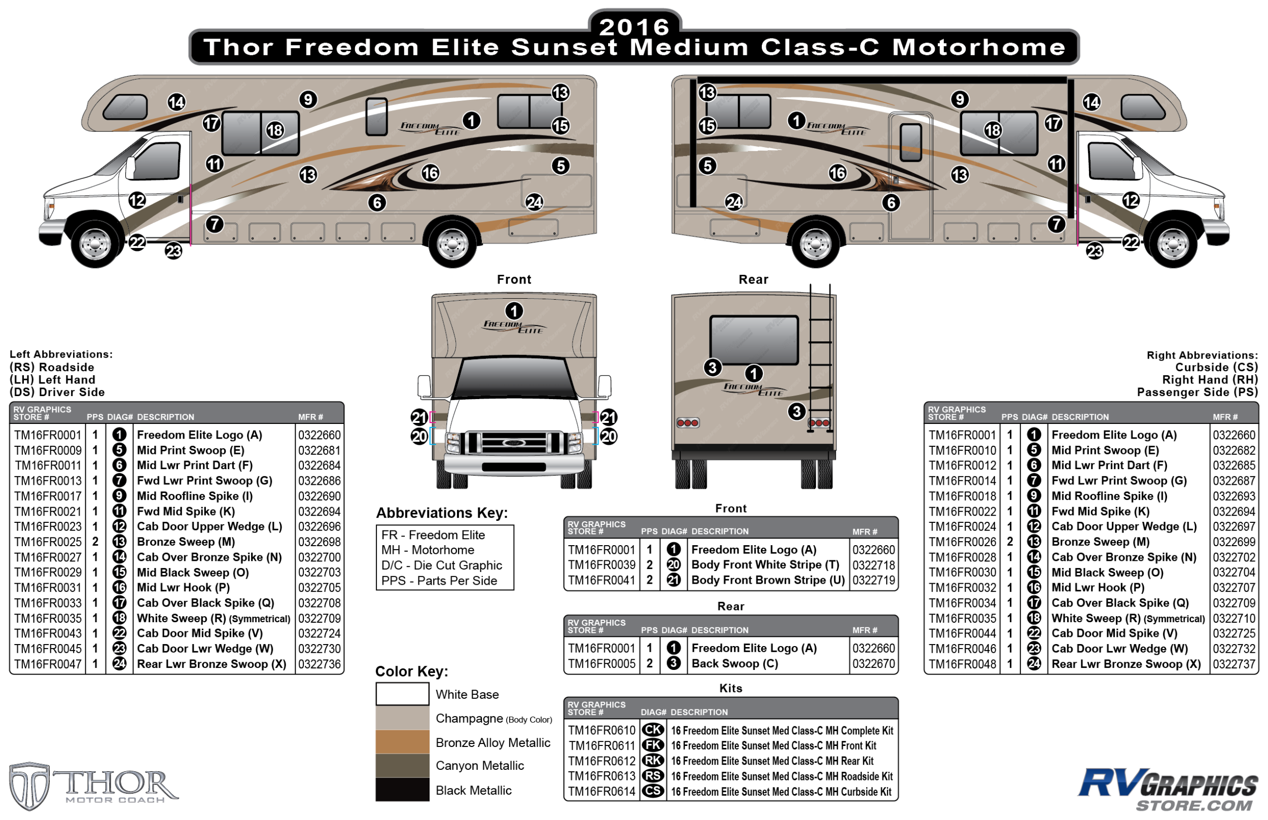 44 Piece 2016 Freedom Elite Medium Motorhome Complete Graphics Kit