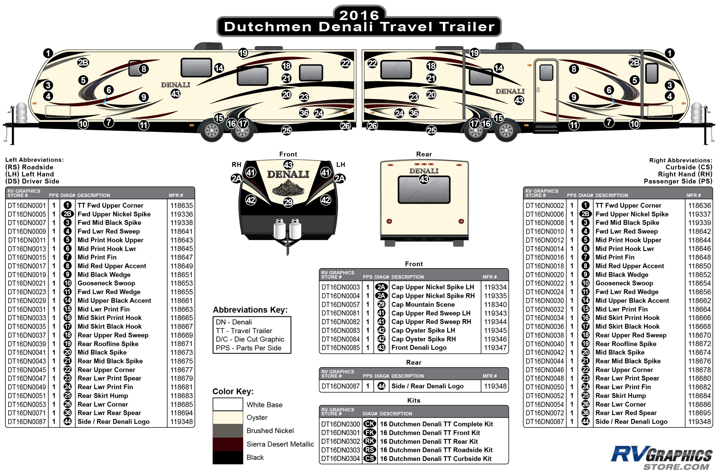 61 Piece 2016 Denali Travel Trailer Complete Graphics Kit