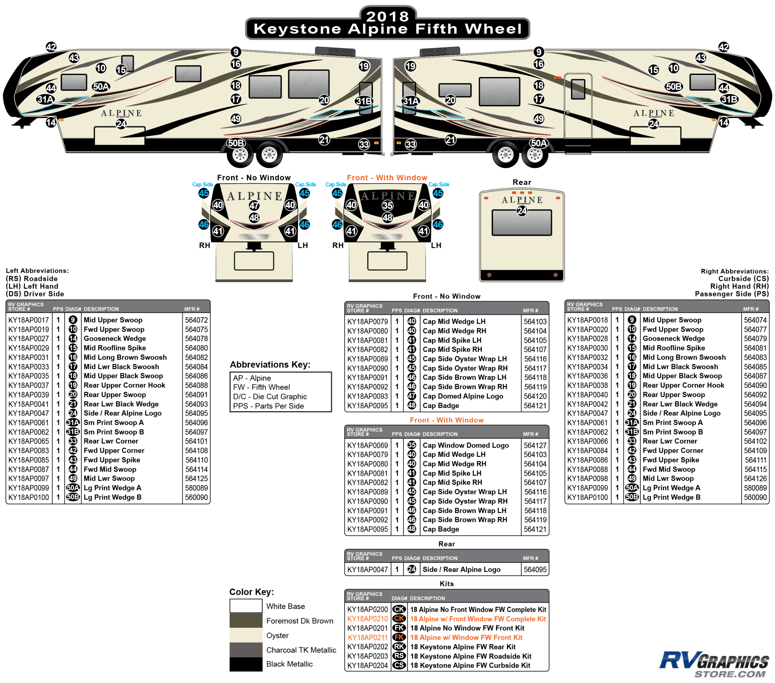 51 Piece 2018 Alpine Fifth Wheel WITH Front Window Complete Graphics Kit
