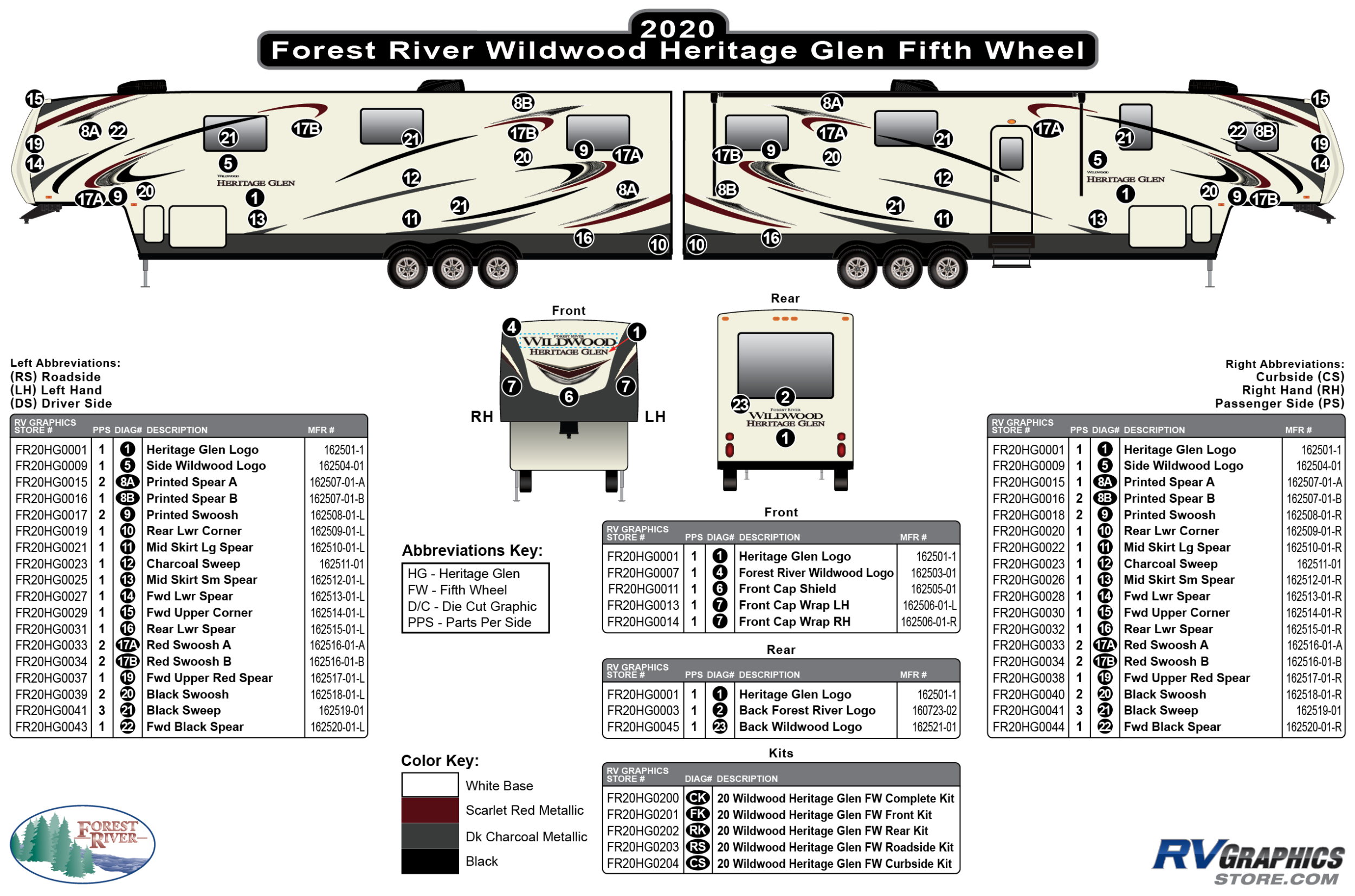 25 Piece 2020 Heritage Glen Fifth Wheel Roadside Graphics Kit