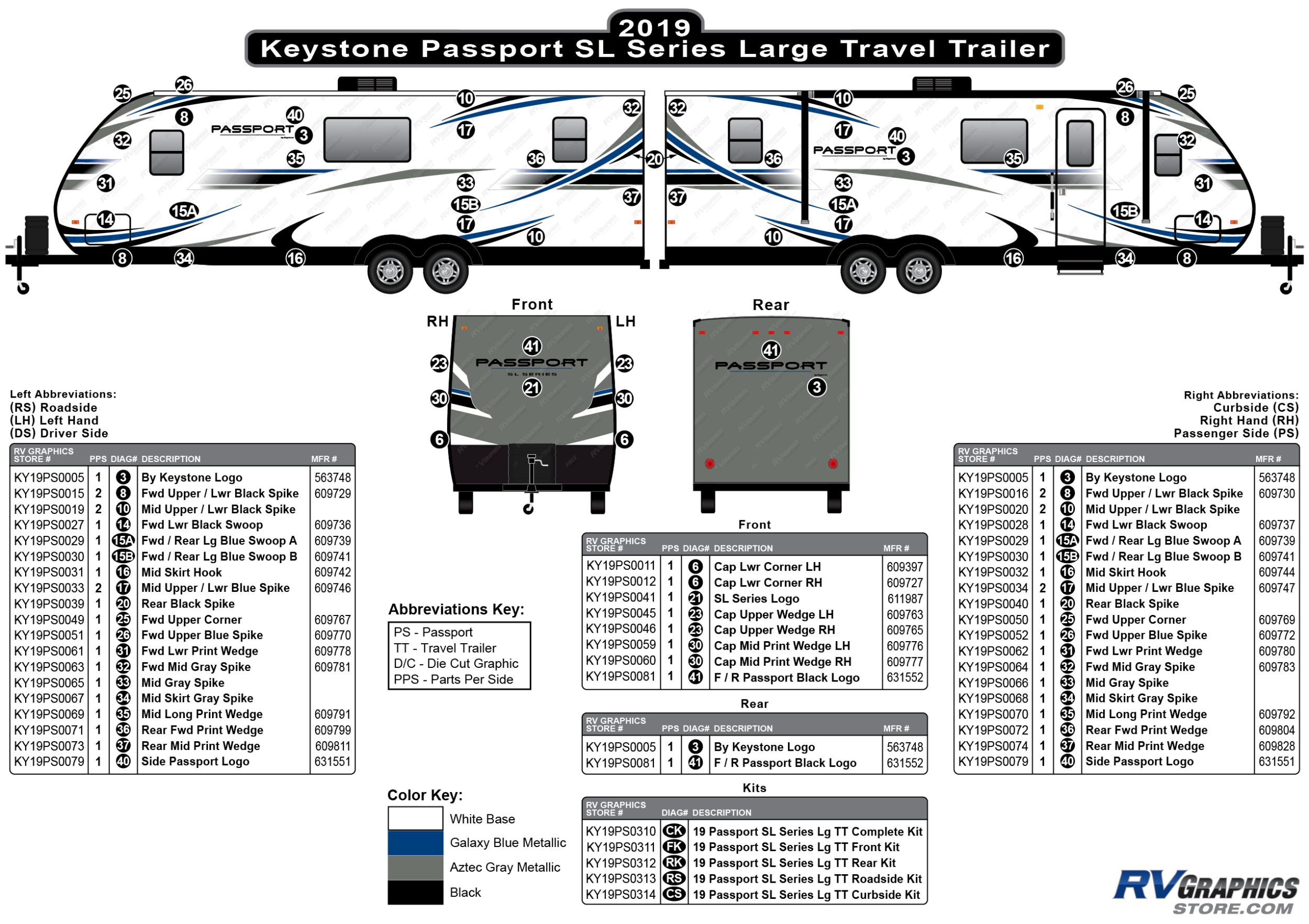 22 Piece 2019 Passport SL Large Travel Trailer Curbside Graphics Kit
