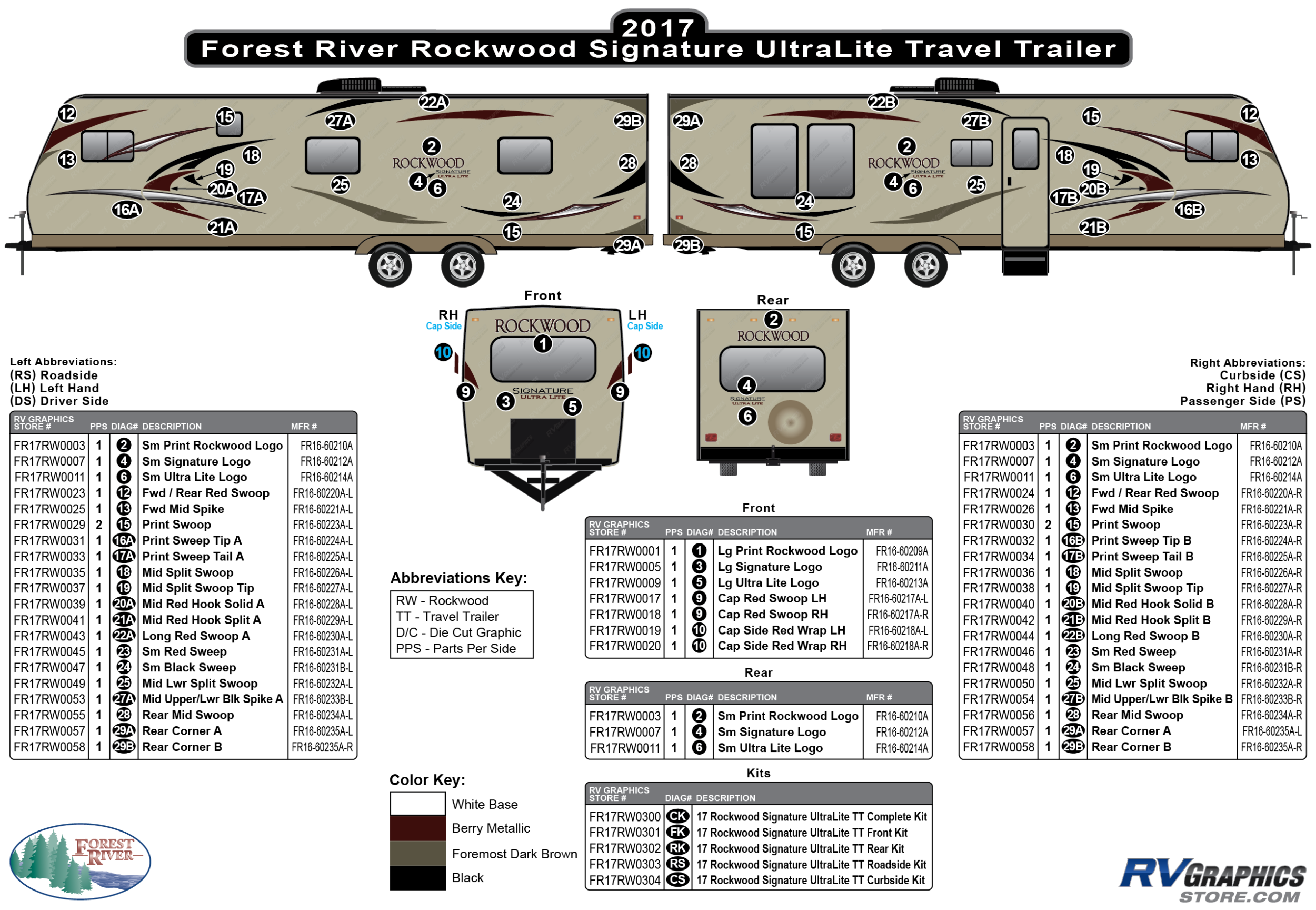 20 Piece 2017 Rockwood Signature Travel Trailer Curbside Graphics Kit