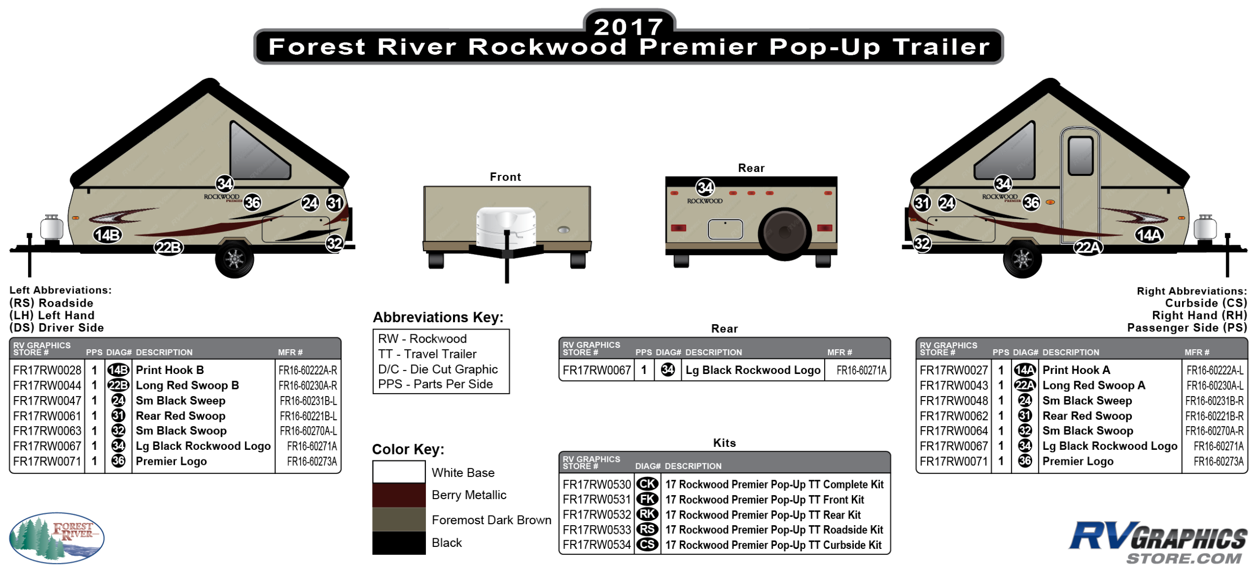 7 Piece 2017 Rockwood Premier Pop-Up Travel Trailer Curbside Graphics Kit
