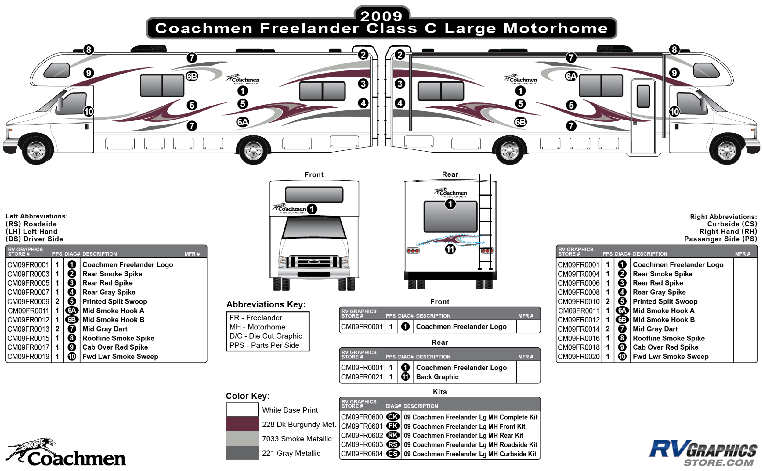 13 Piece 2009 Freelander Large Motorhome Roadside Graphics Kit
