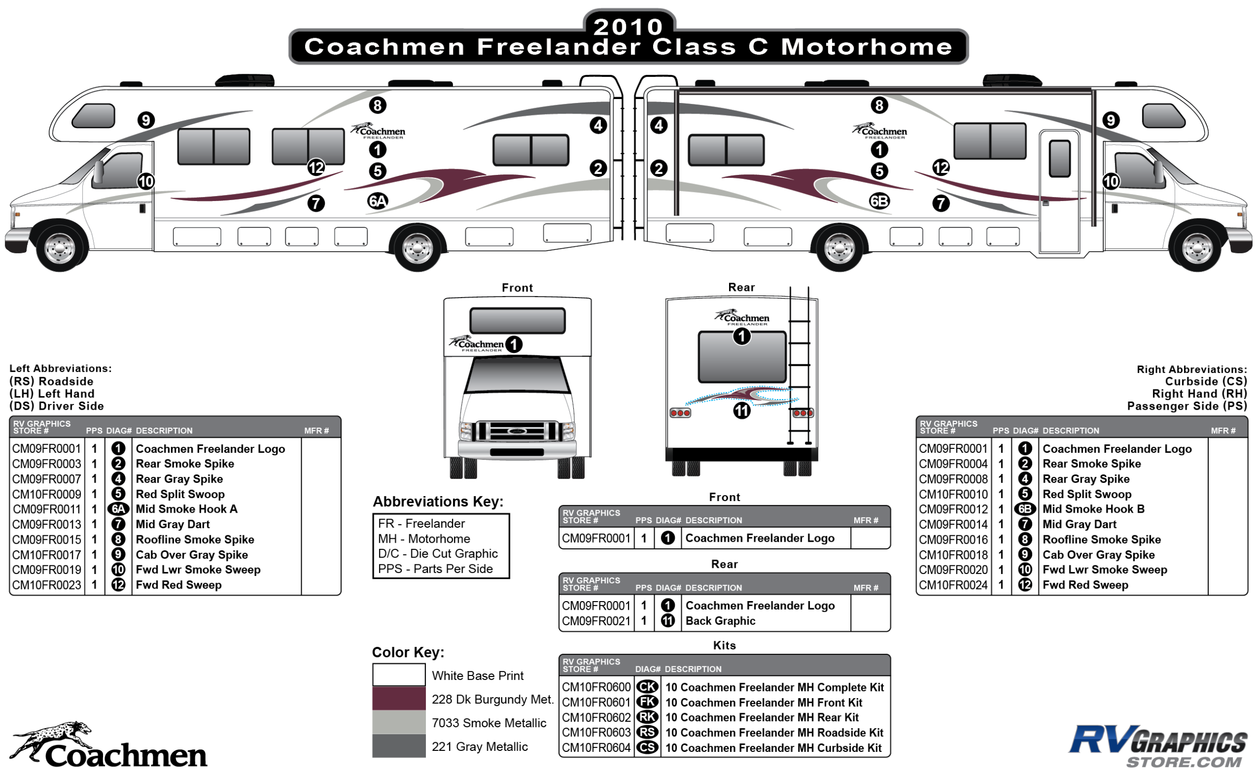 10 Piece 2010 Freelander Large Motorhome Roadside Graphics Kit