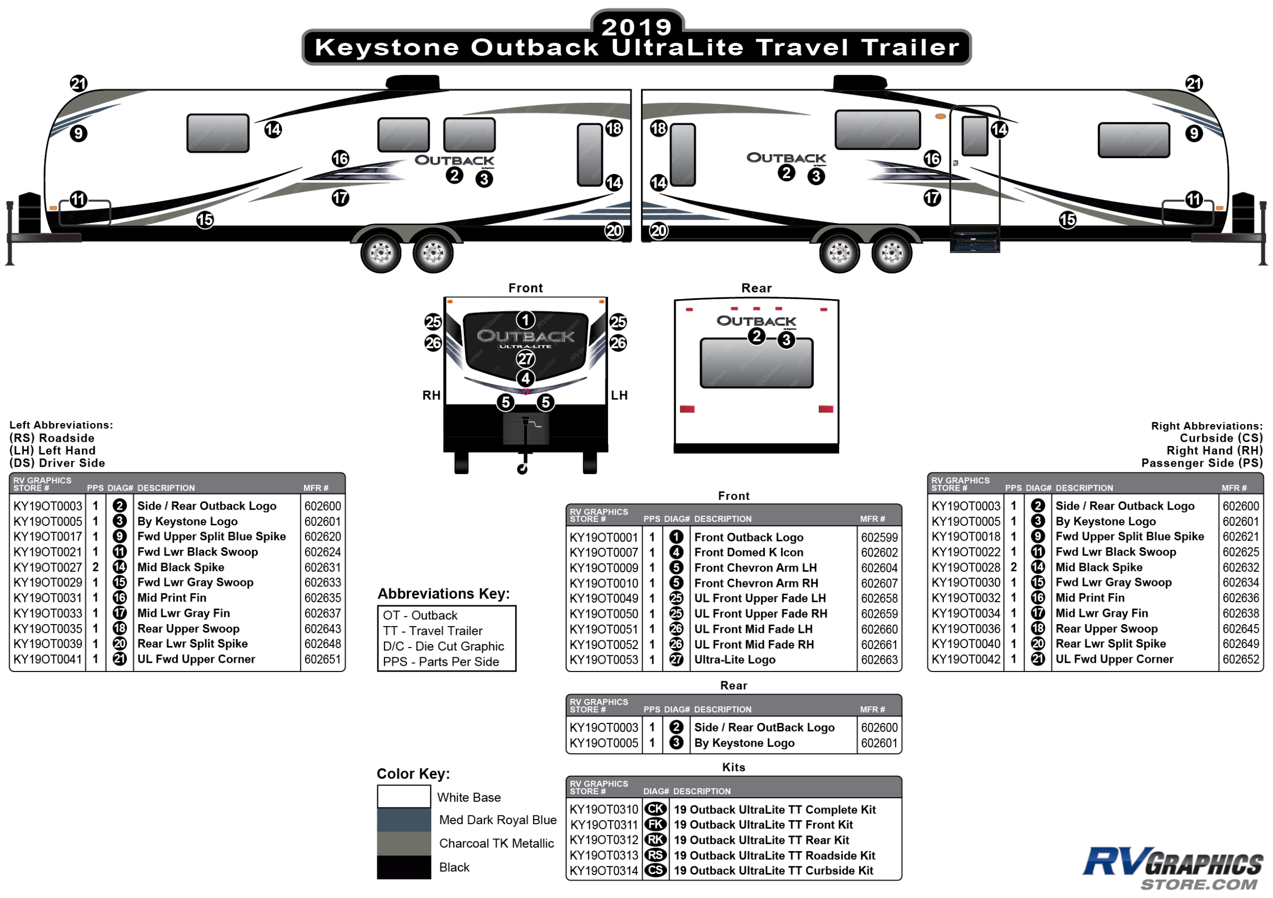 47 Piece 2019 Outback UltraLite Travel Trailer Complete Graphics Kit