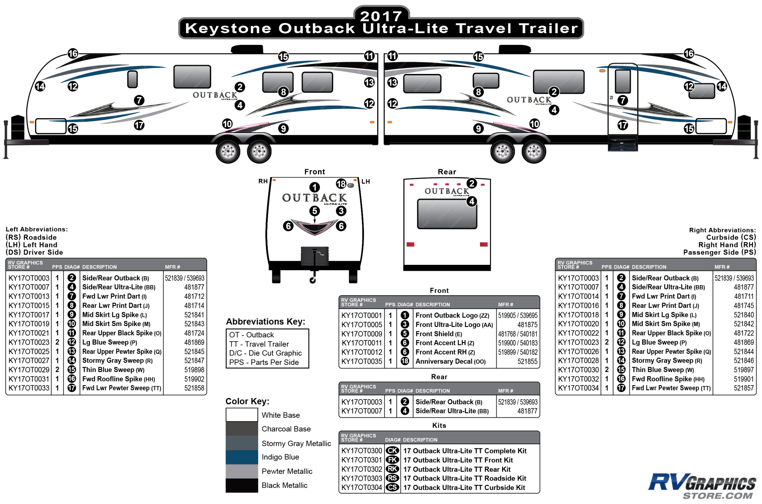 38 Piece 2017 Outback UltraLite Travel Trailer Complete Graphics Kit