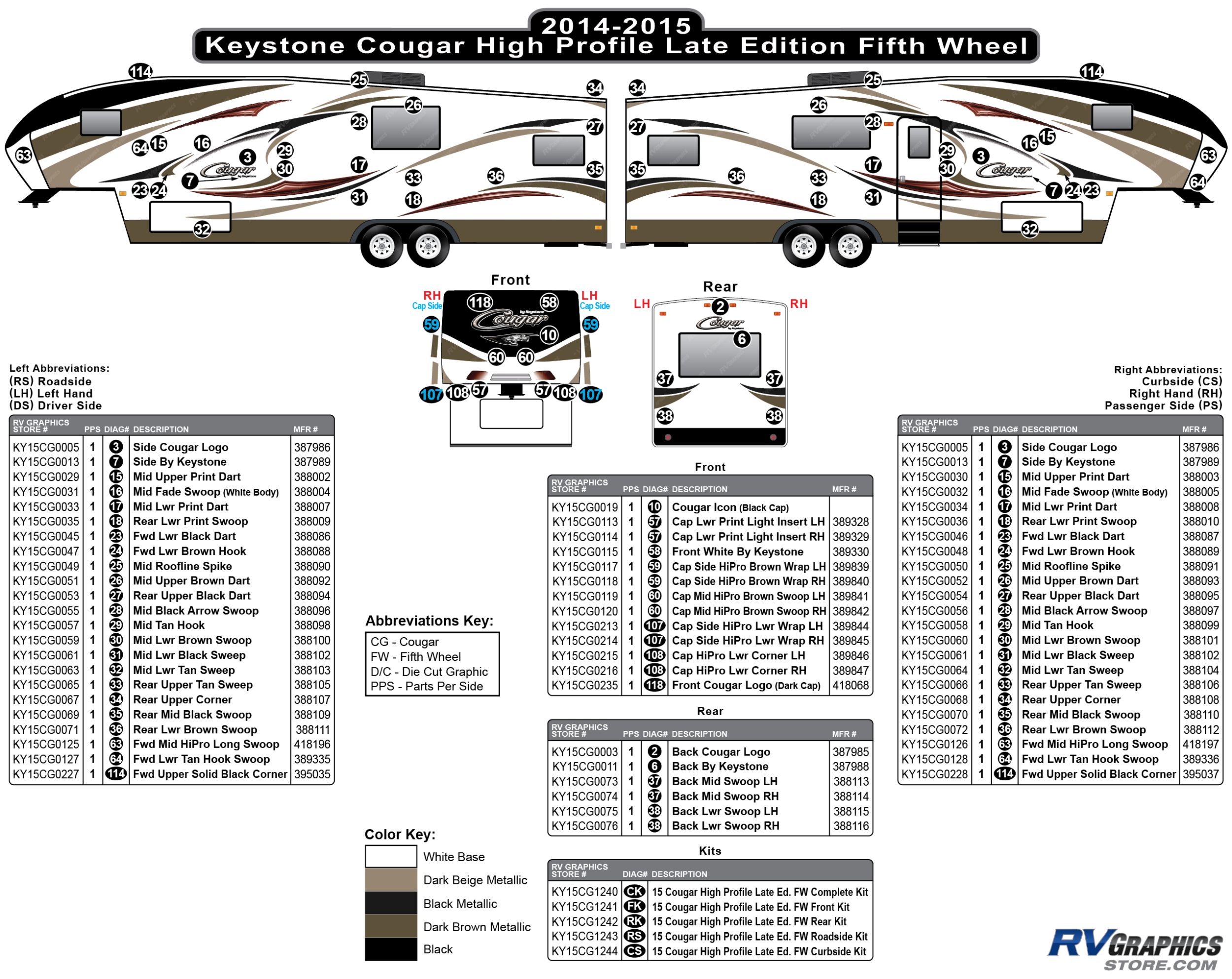 65 Piece 2014 Cougar Hi-Pro Fifth Wheel Later Edition Complete Graphics Kit