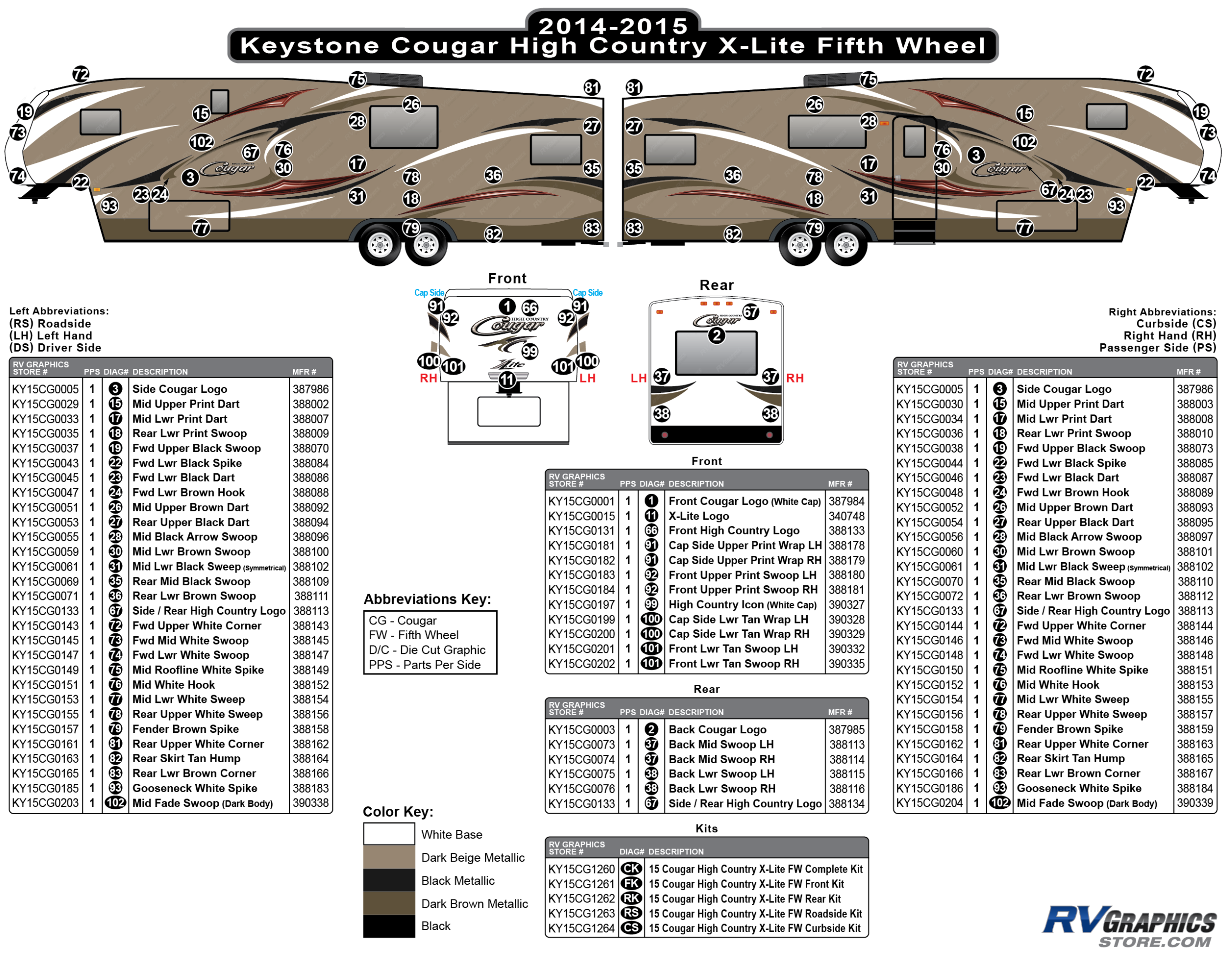 78 piece 2015 Cougar High Country X-Lite Fifth Wheel Complete Graphics Kit