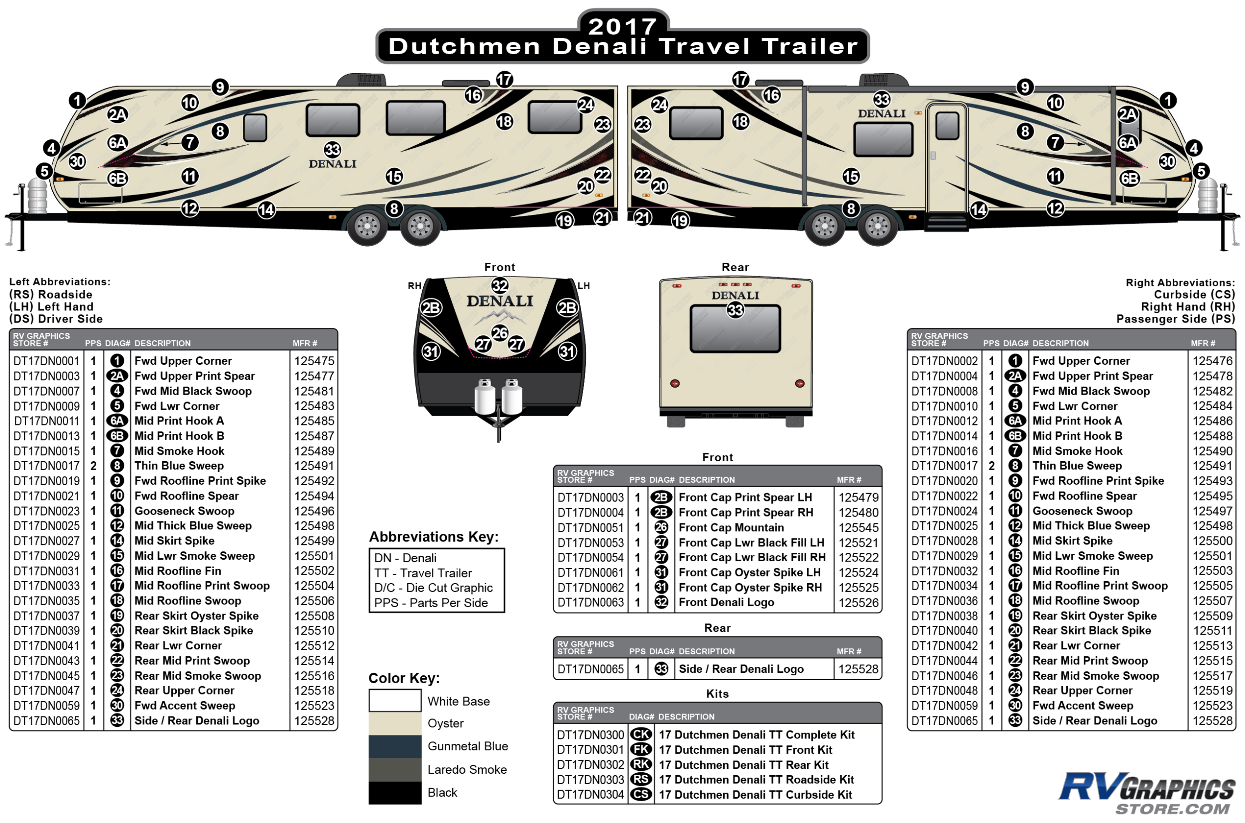 61 Piece 2017 Denali Travel Trailer Complete Graphics Kit