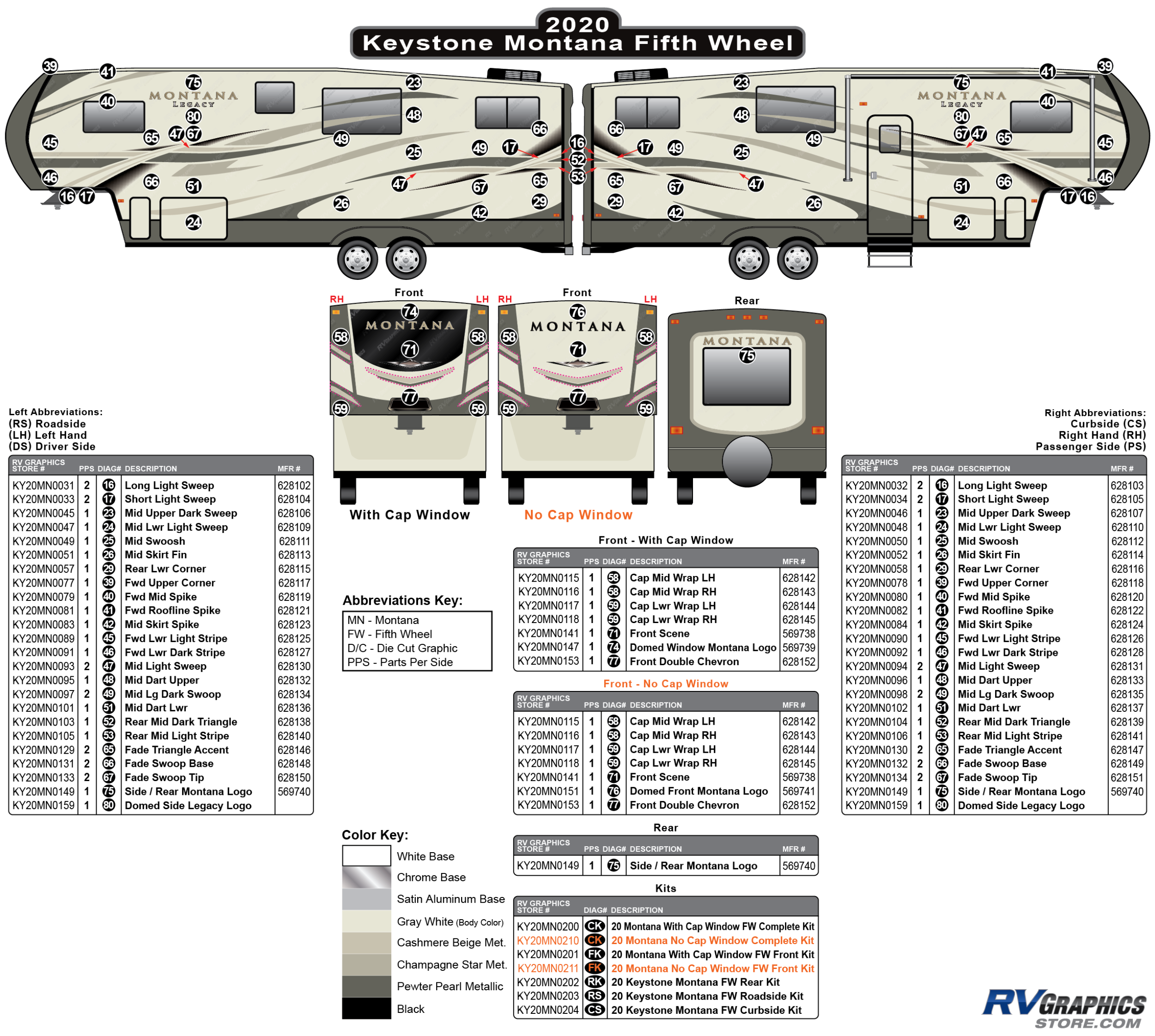 70 Piece 2020 Montana Fifth Wheel WITH Front Window Complete Graphics Kit
