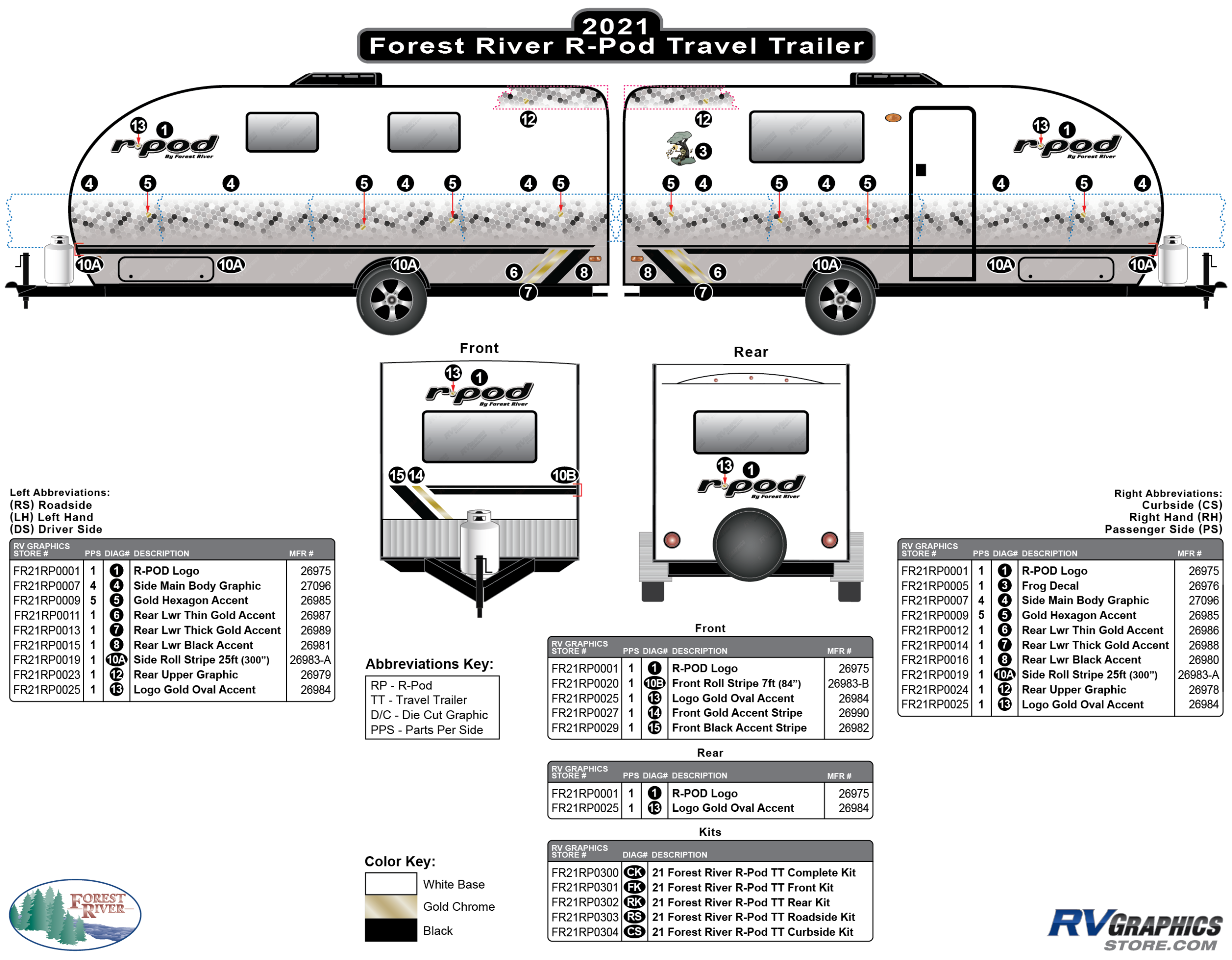 17 Piece 2021 R-POD Travel Trailer Curbside Graphics Kit