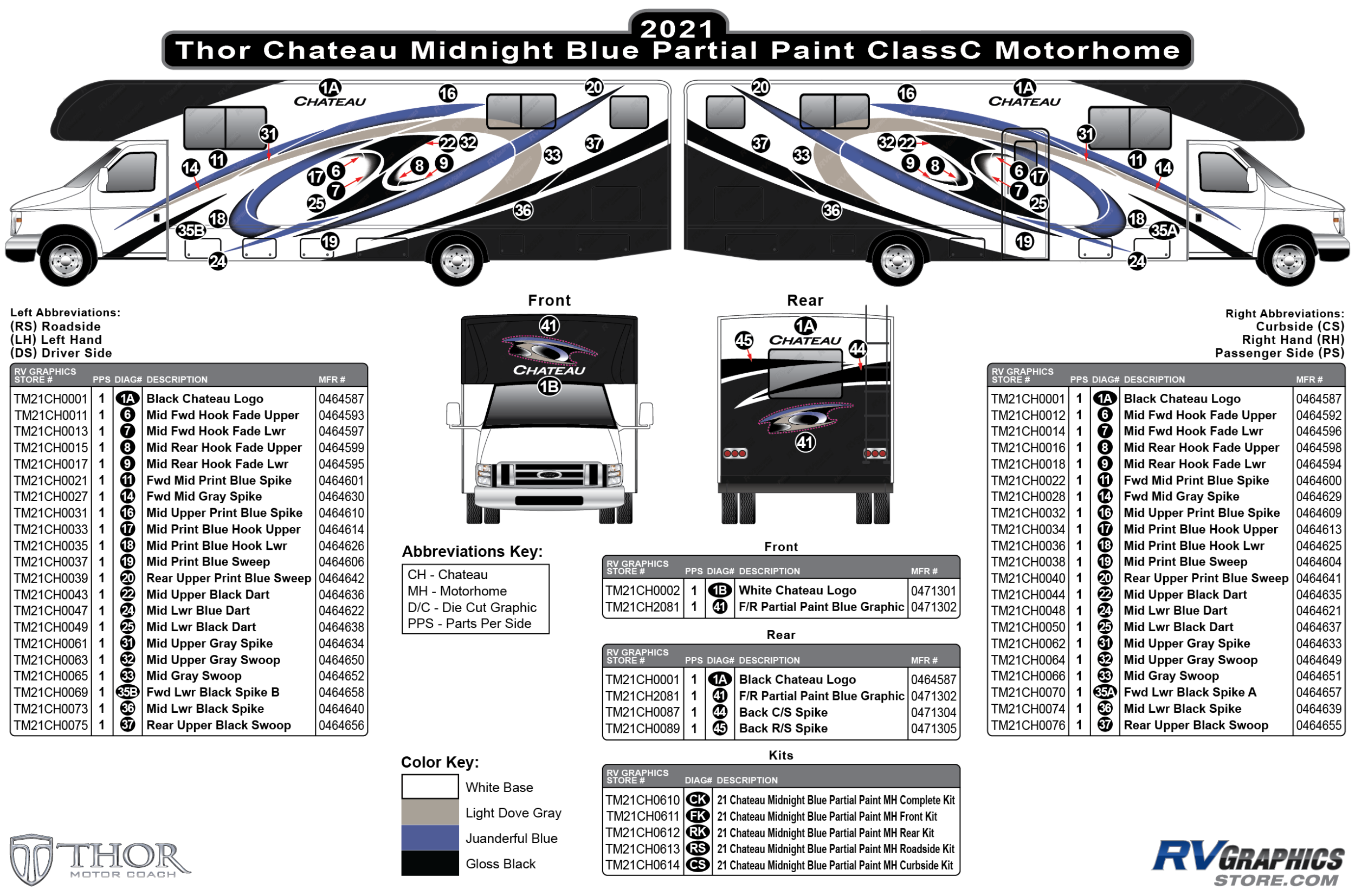 48 Piece 2021 Chateau Motorhome Complete Graphics Kit Blue Version-Partial Paint