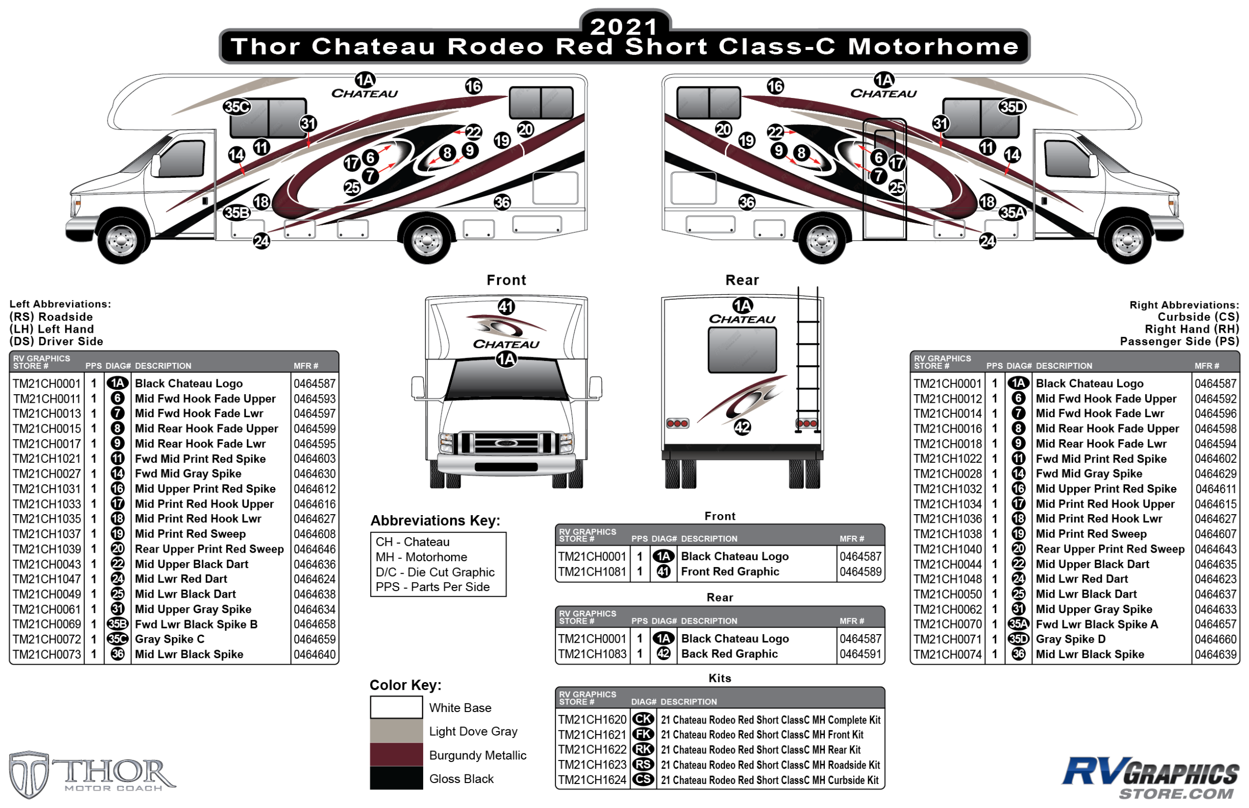 42 Piece 2021 Chateau Motorhome Complete Graphics Kit Red Version-Short Length