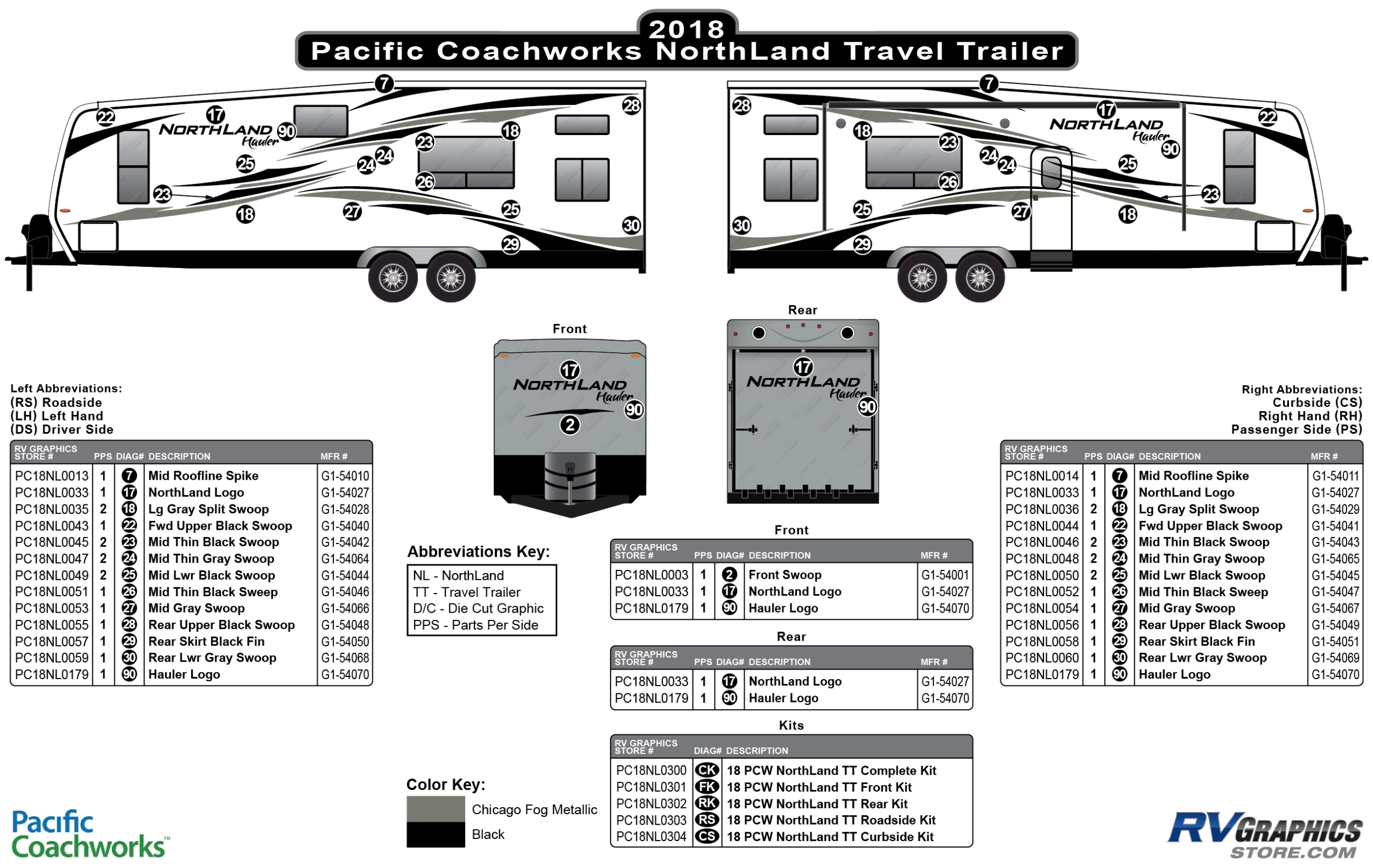3 Piece 2018 Northland Hauler Travel Trailer Front Graphics KitNew