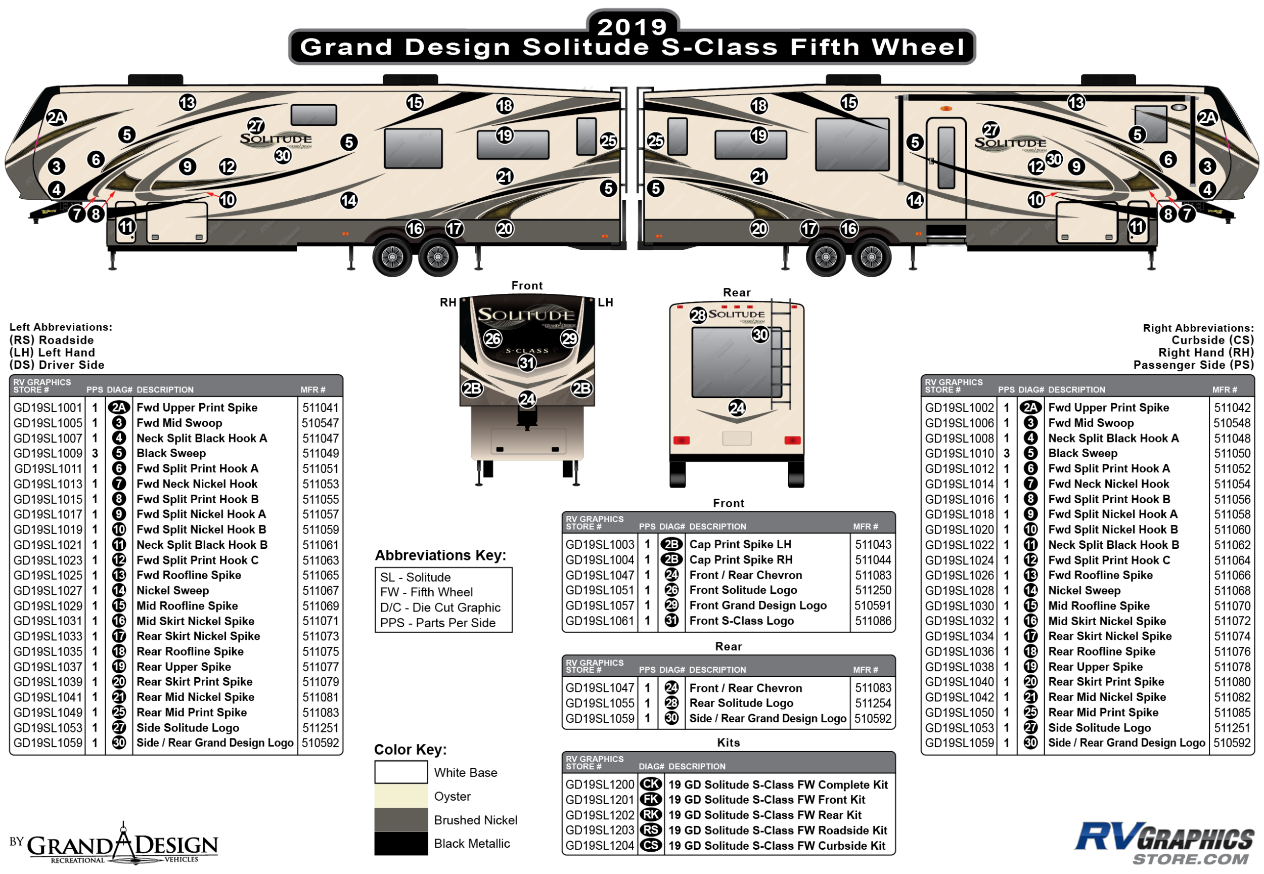Description: 2019 Solitude RV Graphics Roadside Kit Bullet Number: RS Color: 3 Base Colors Height (inches): 15.7 Length (inches}: 137.9 Adhesive Type Provided: Controltac Paper...More Details »