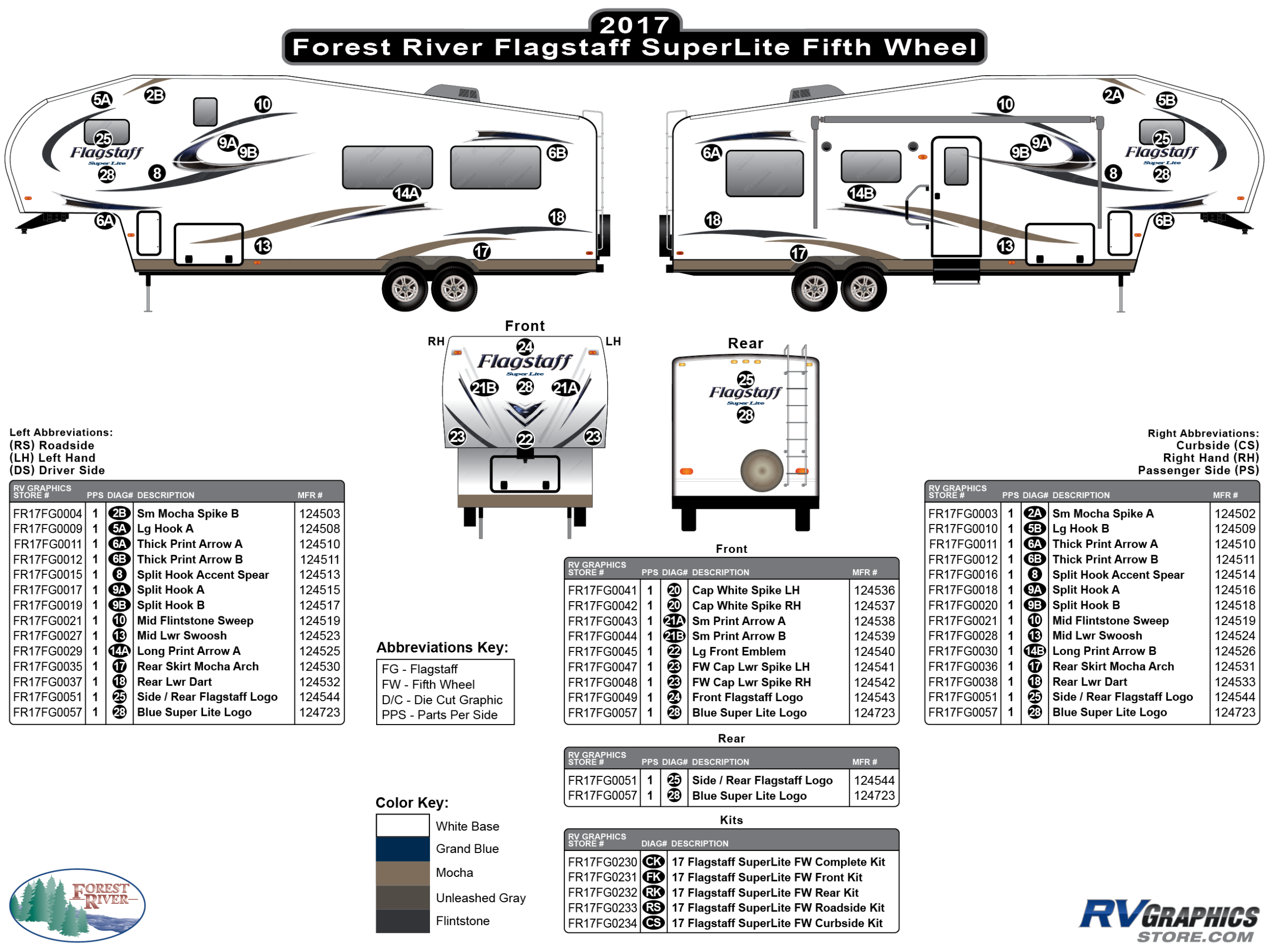 37 Piece 2017 Flagstaff SuperLite Fifth Wheel Complete Graphics Kit
