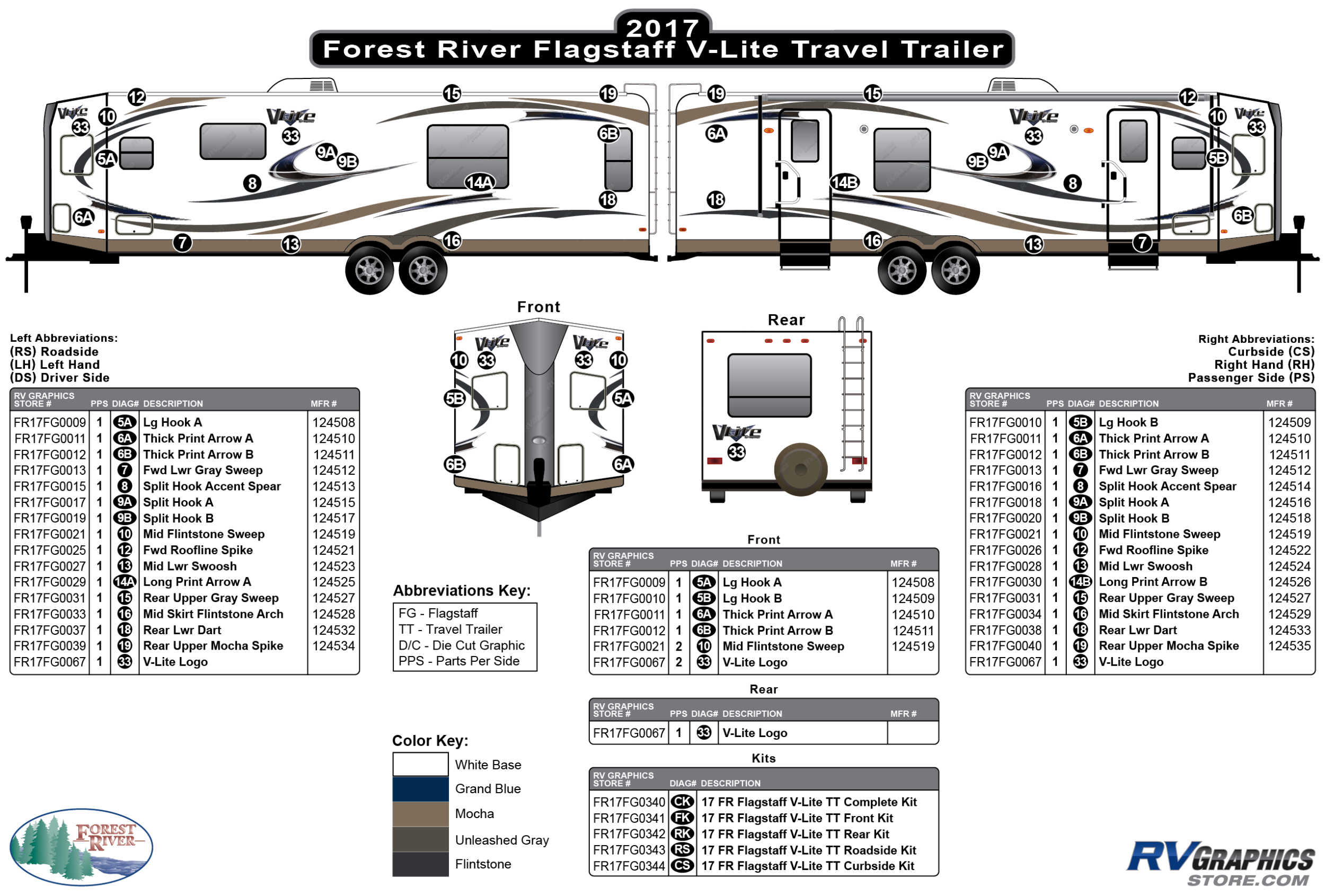 16 Piece 2017 Flagstaff V-Lite Travel Trailer Curbside Graphics Kit