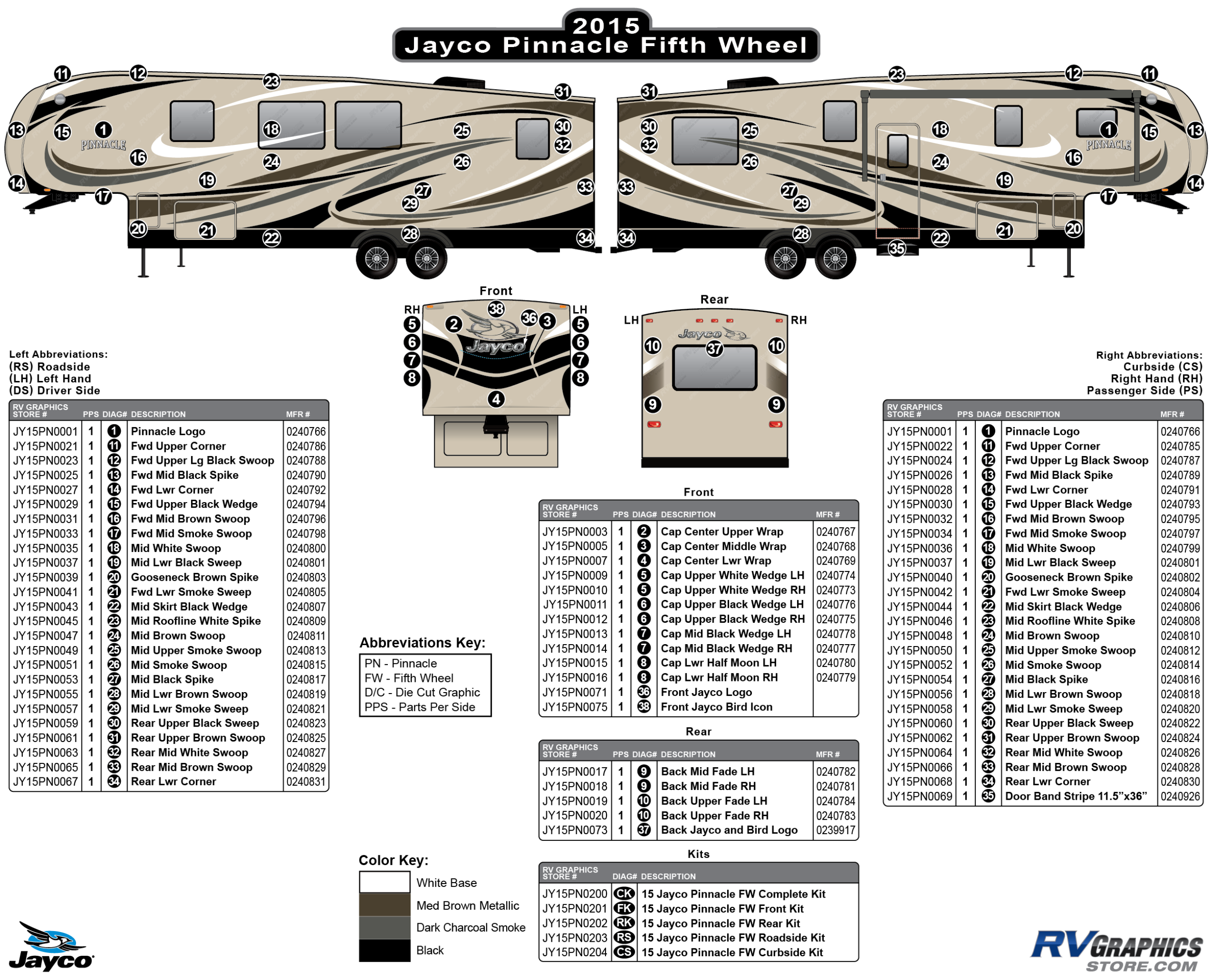 69 Piece 2015 Pinnacle Fifth Wheel Complete Graphics Kit
